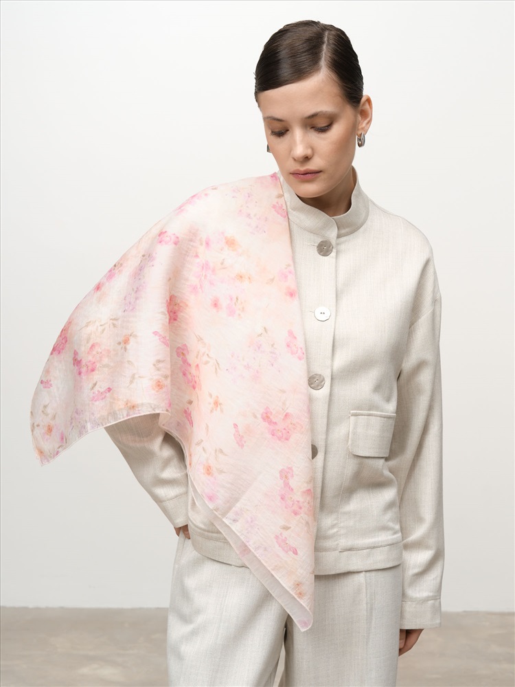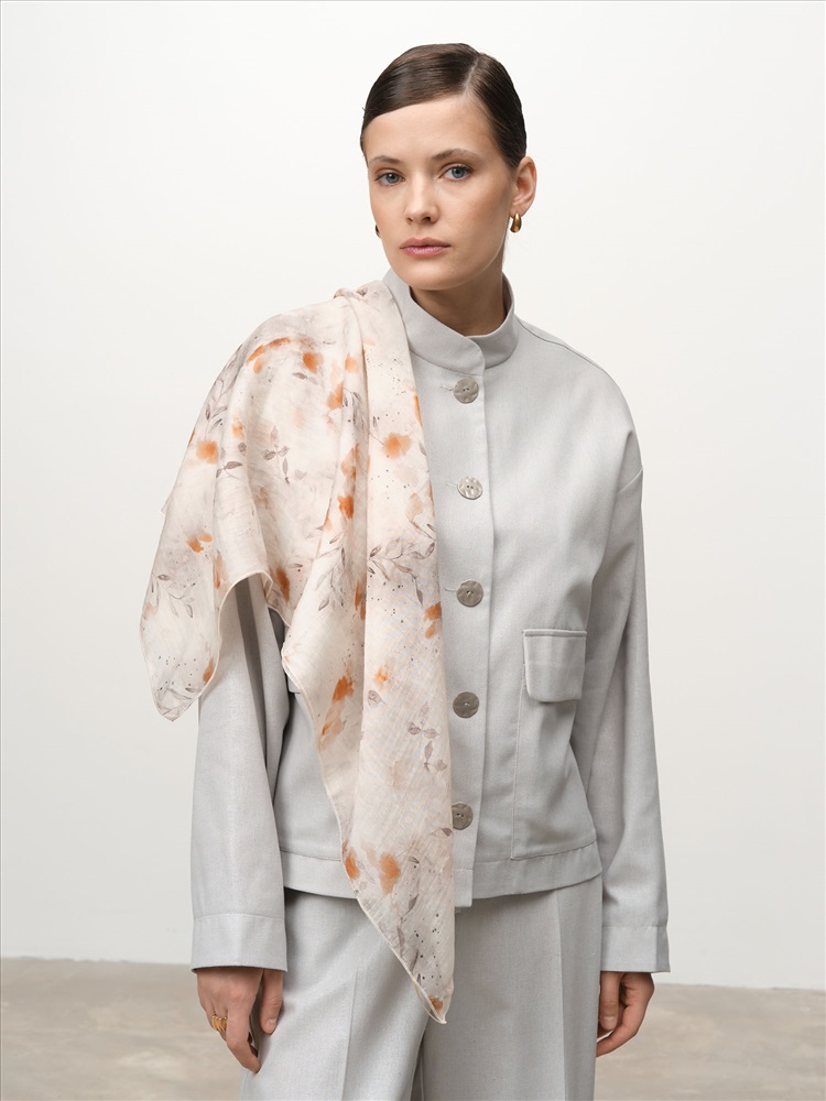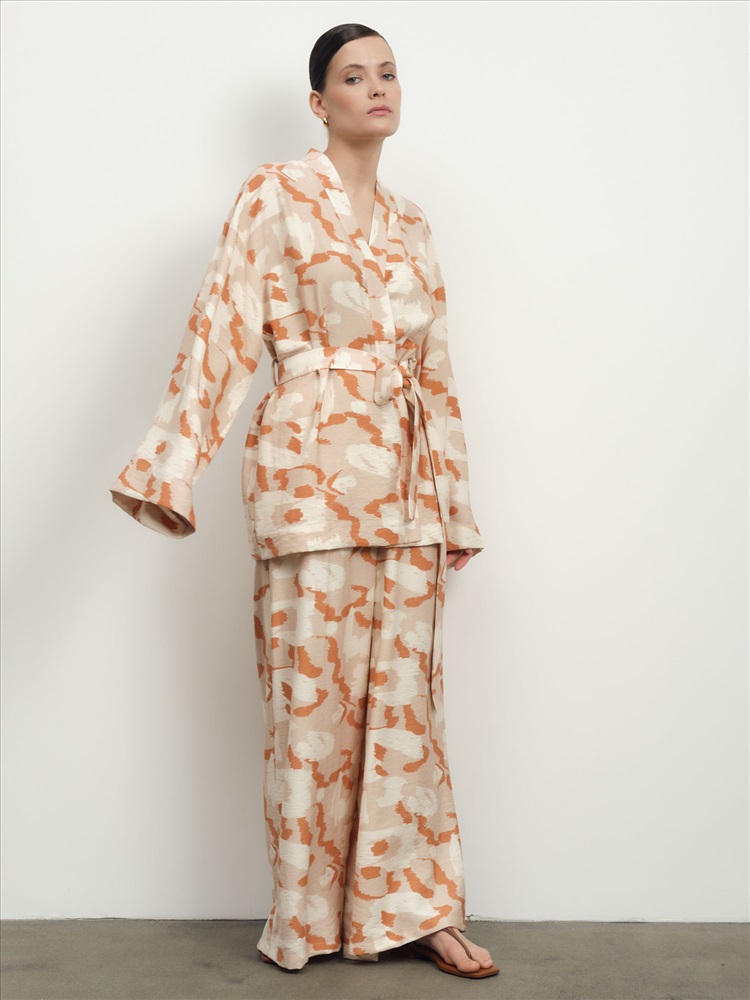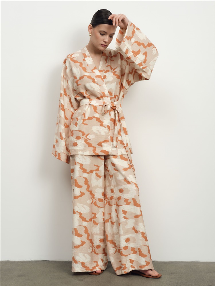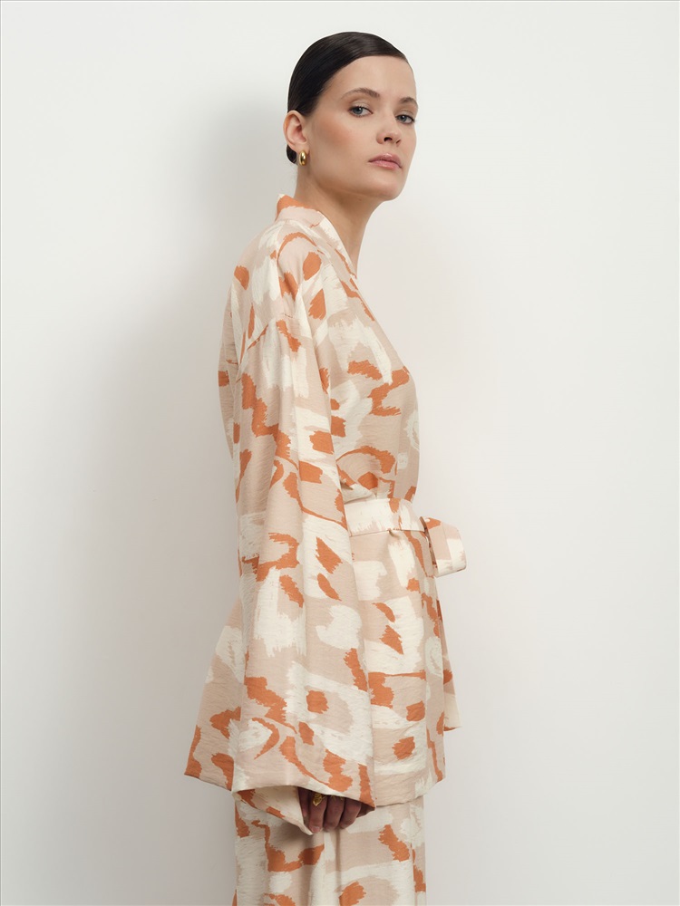 Жакет-кимоно льняное 42367 с цветочным принтом 5 фото