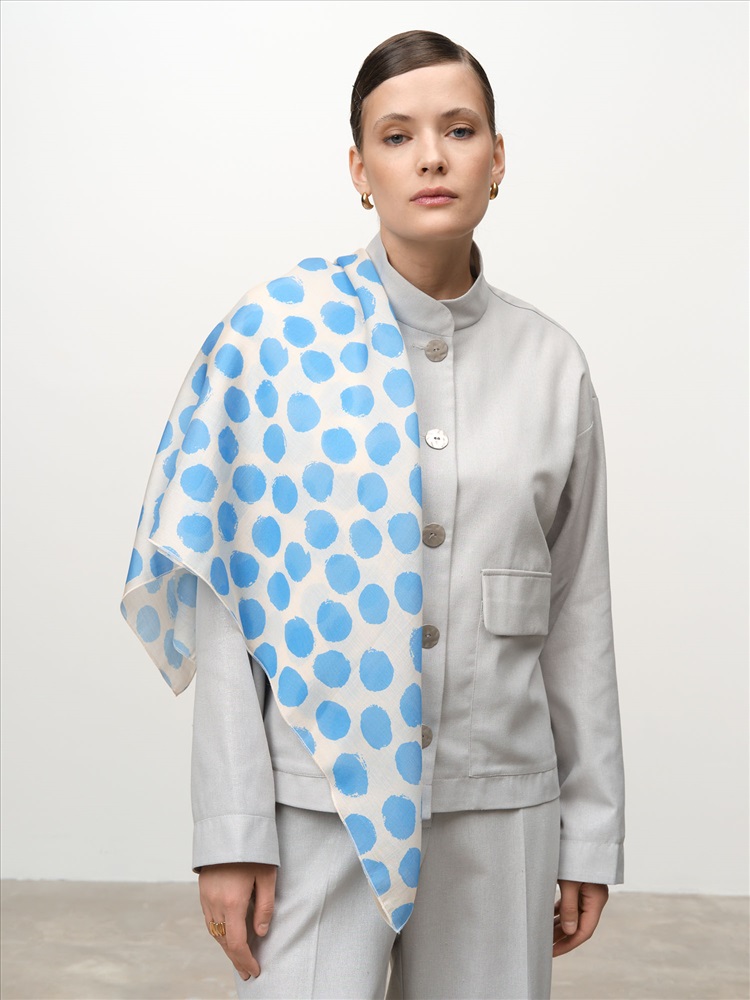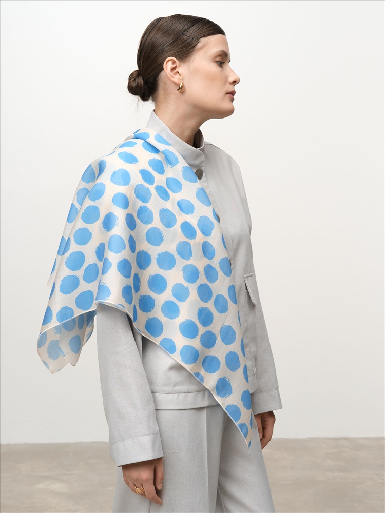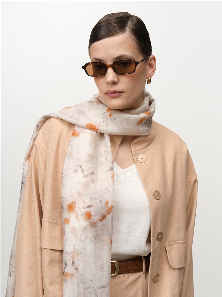 Палантин из тенселя 12025 серо-бежевый 4 фото