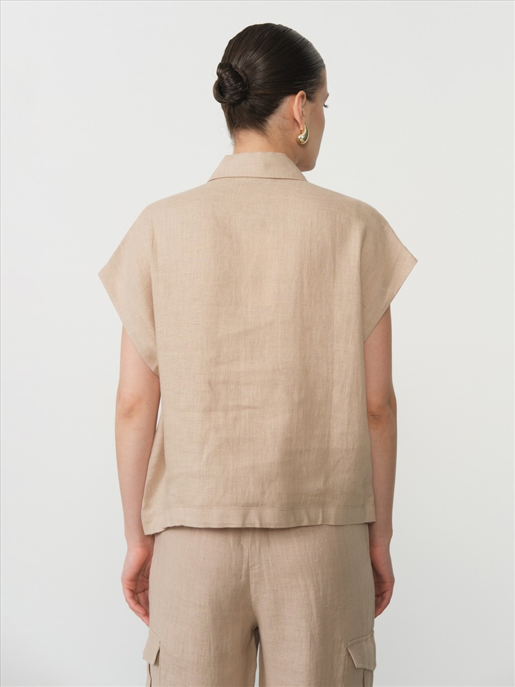 Блузка женская КЛ-7842-ИЛ24 серо-бежевая 7 фото