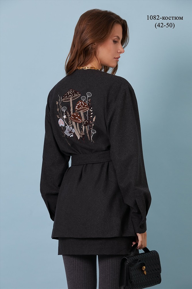 Интересный фасон, спущенная линия плеча. Удлинённое, модель овер. Всё, как я люблю. Необычное, спинка из джинсовой ткани, дизайнерская вышивка.