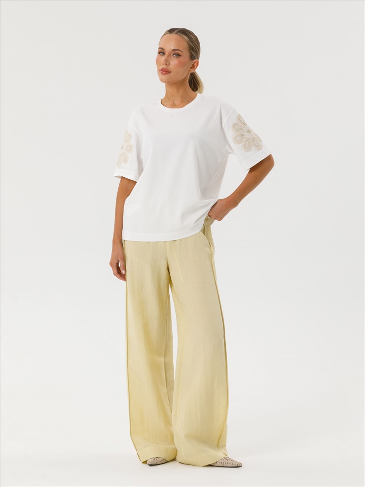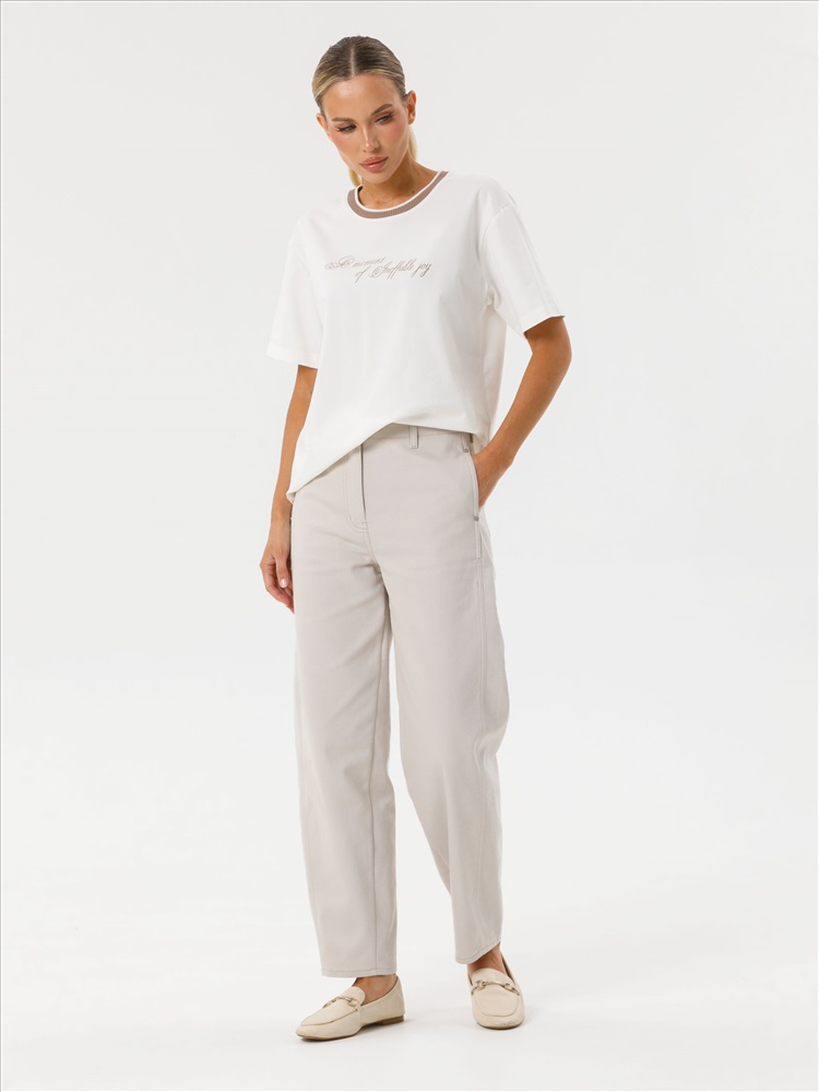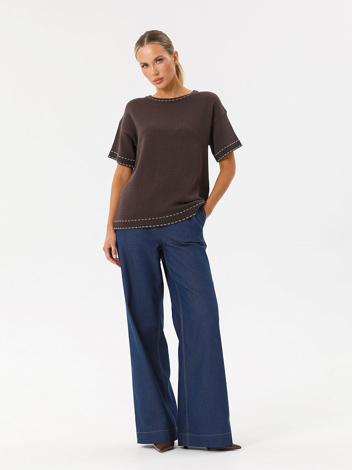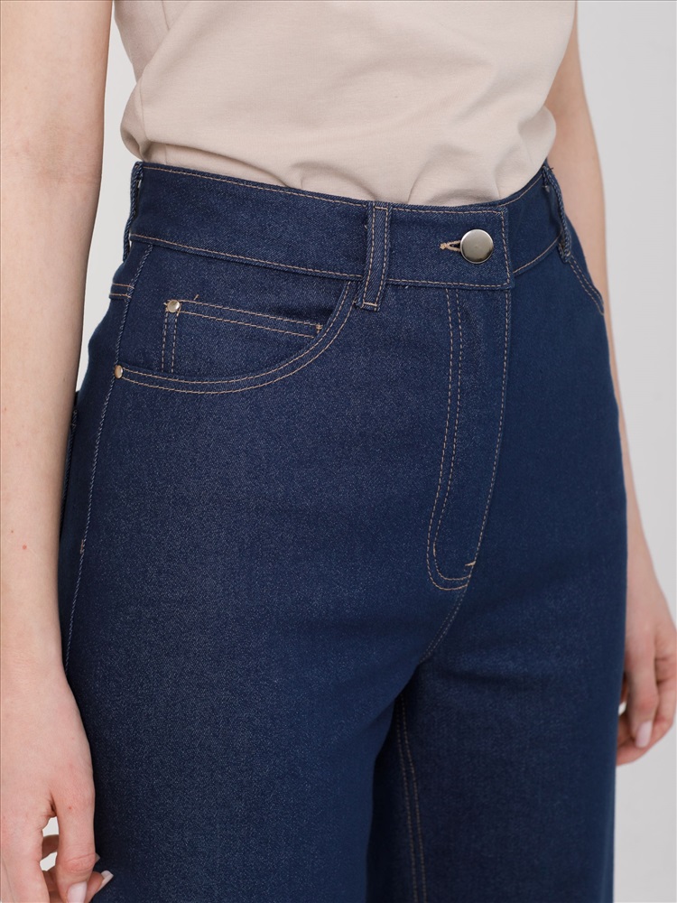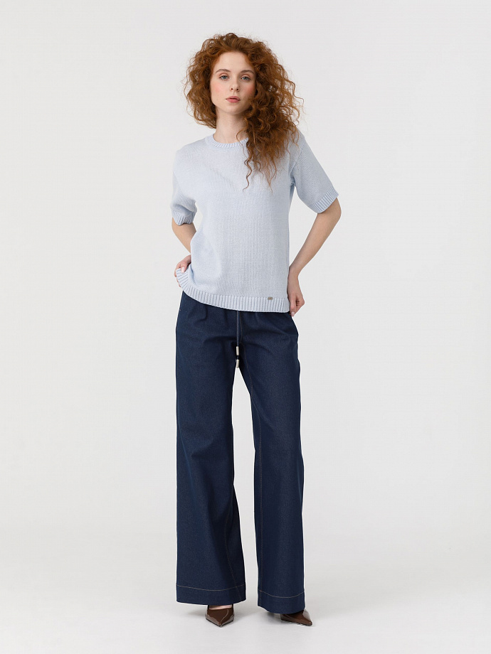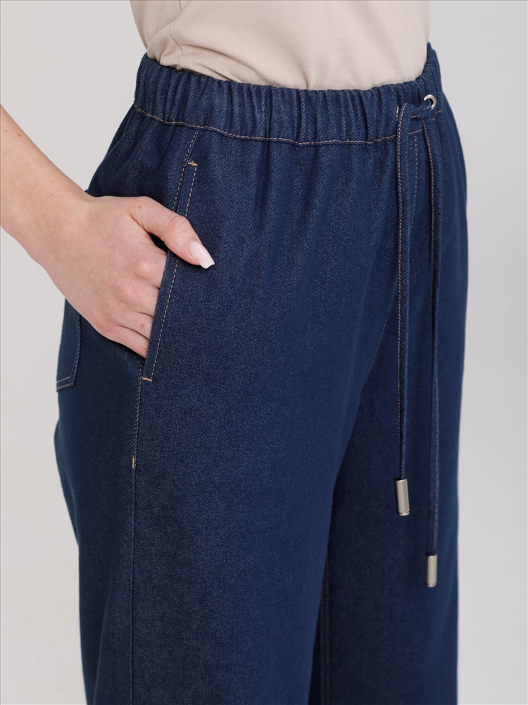 Ткань - не джинса, гораздо тоньше, трусы на виду. Из-за этого убрала звезду. Всё таки это не джинсы, а брюки. Длина на 170 и выше, на 48 широкие, выглядят не так, как на фото, гораздо шире в штанинах сразу от бедра. Верх, талия нормально. Мои параметры Об 104, ОТ 80. Понесу в ателье.