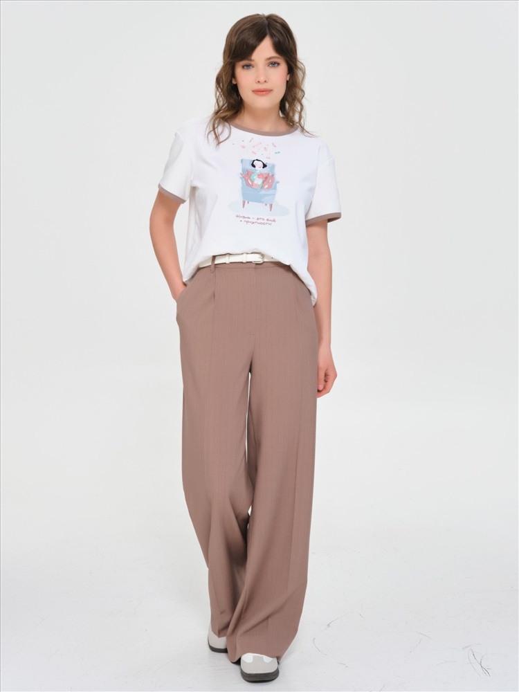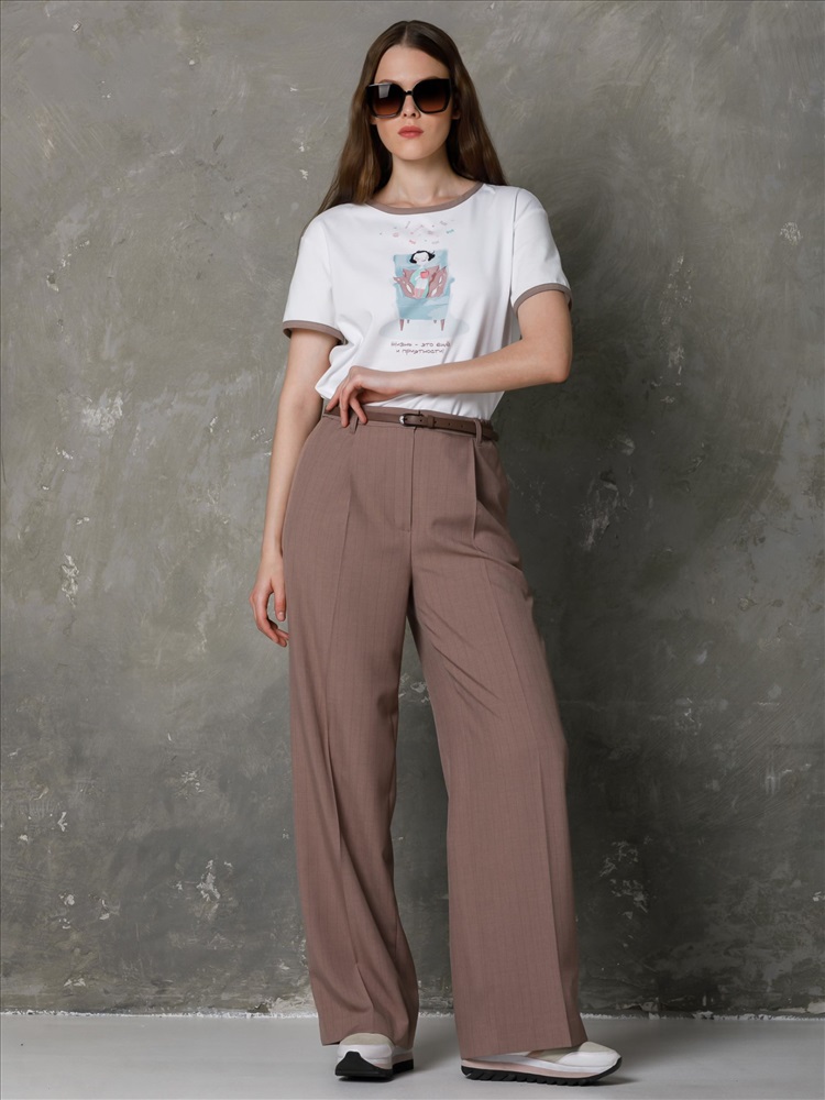 Лучшие брюки в моём гардеробе на сегодня, просто огонь! На классический 48 размер, рост 163, сели идеально, где нужно - продтянули, не широкие - не узкие, цвет нейтральный, с любым верхом можно сочетать. Качество пошива прекрасное! Спасибо оргу за работу и прекрасные закупки!