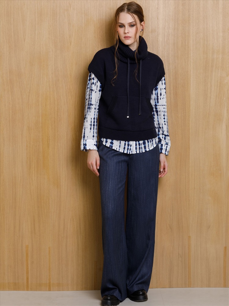 Ткань - не джинса, гораздо тоньше, трусы на виду. Из-за этого убрала звезду. Всё таки это не джинсы, а брюки. Длина на 170 и выше, на 48 широкие, выглядят не так, как на фото, гораздо шире в штанинах сразу от бедра. Верх, талия нормально. Мои параметры Об 104, ОТ 80. Понесу в ателье.