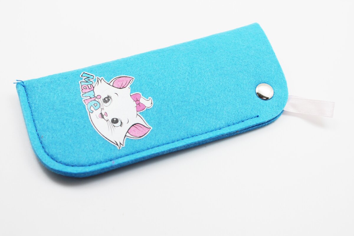 Чехол кошелек из войлока на кнопке с ленточкой и рисунком голубой 2 фото