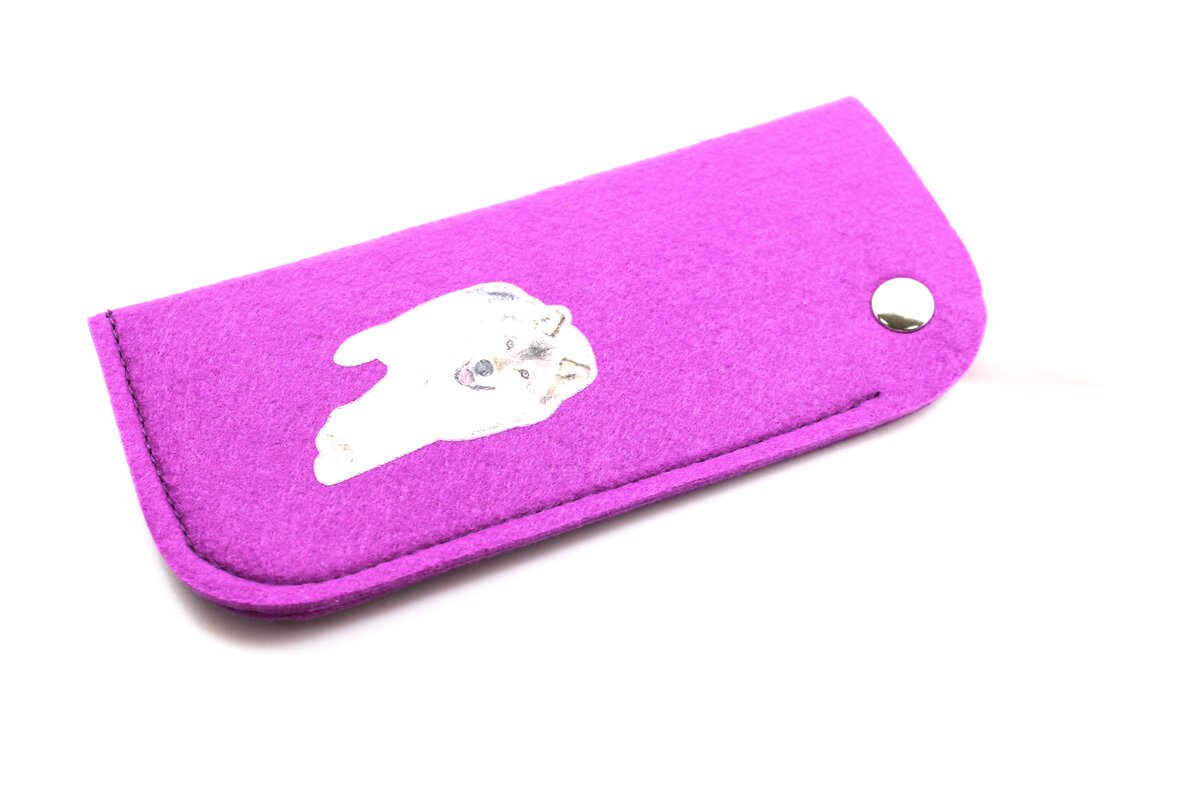 Чехол кошелек из войлока на молнии с очками сиреневый 2 фото
