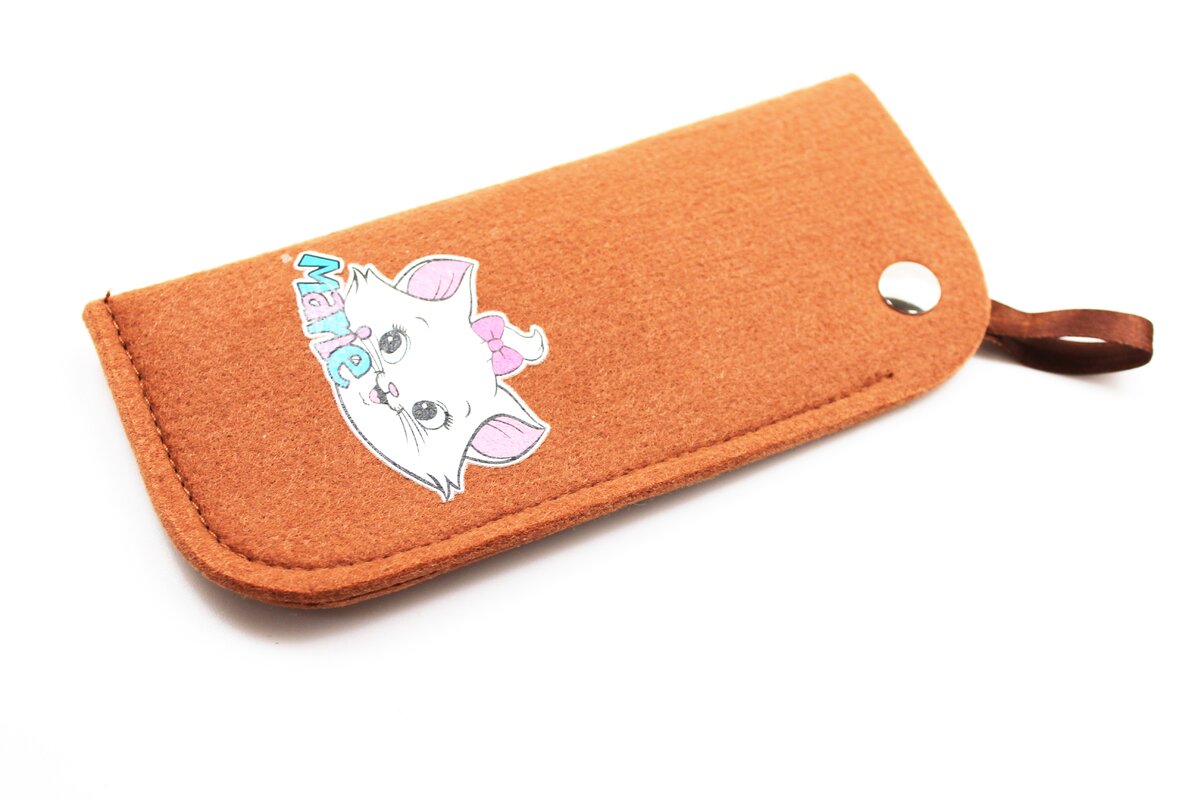 Чехол кошелек из войлока на молнии с очками коричневый 2 фото