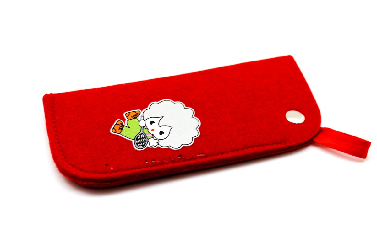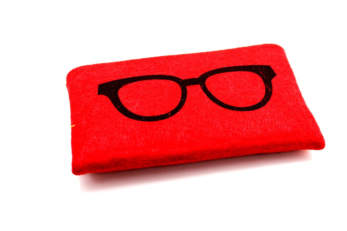 Чехол кошелек из войлока на молнии с очками красный 2 фото