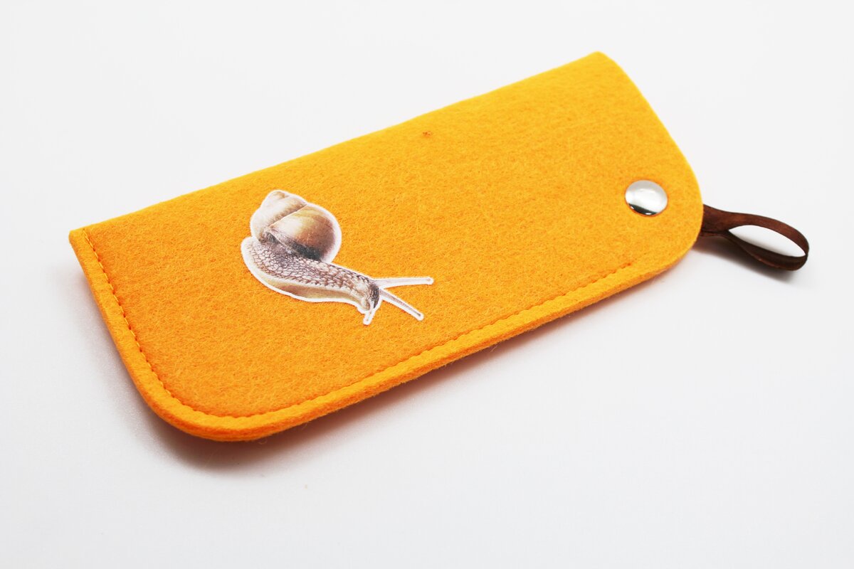 Чехол кошелек из войлока на молнии с очками оранжевый 2 фото