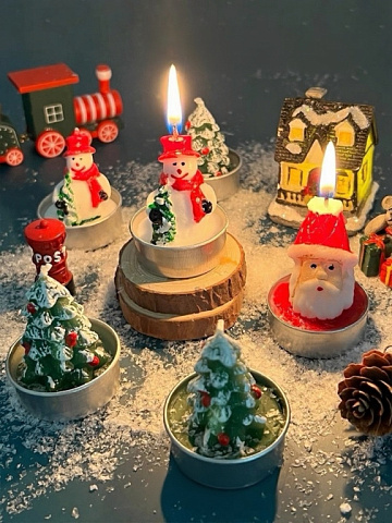 СНОУ БУМ Свеча в виде елки в подарочной упаковке, 6,5см, парафин, 4 дизайна