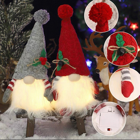 Светильник Гном с СЕРОЙ ШАПОЧКОЙ 28см