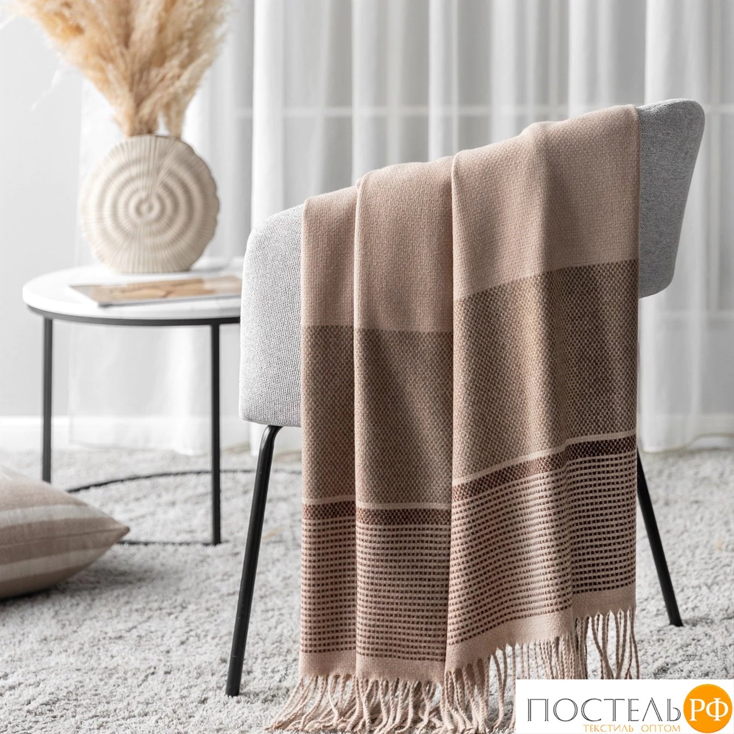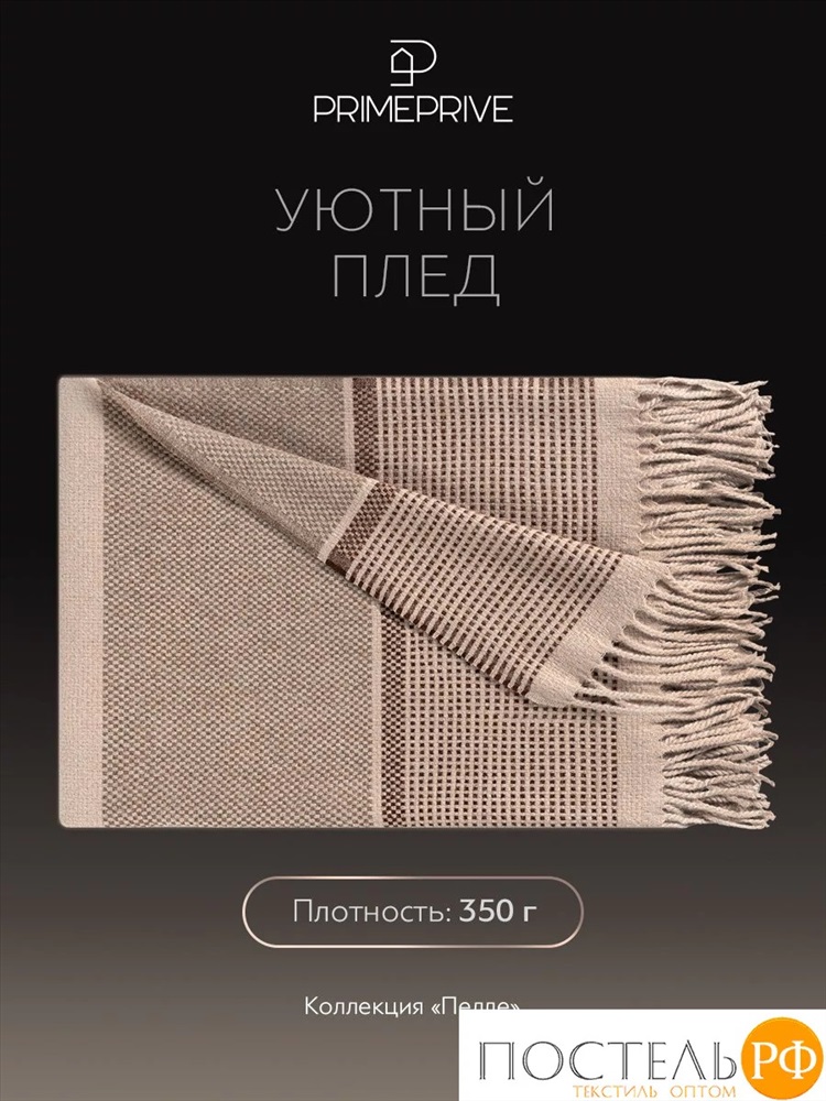 Estia ПЕЛЛЕ Плед коричн. 140х200, 1 пр., 52% вискоза, 48% шерсть 9 фото