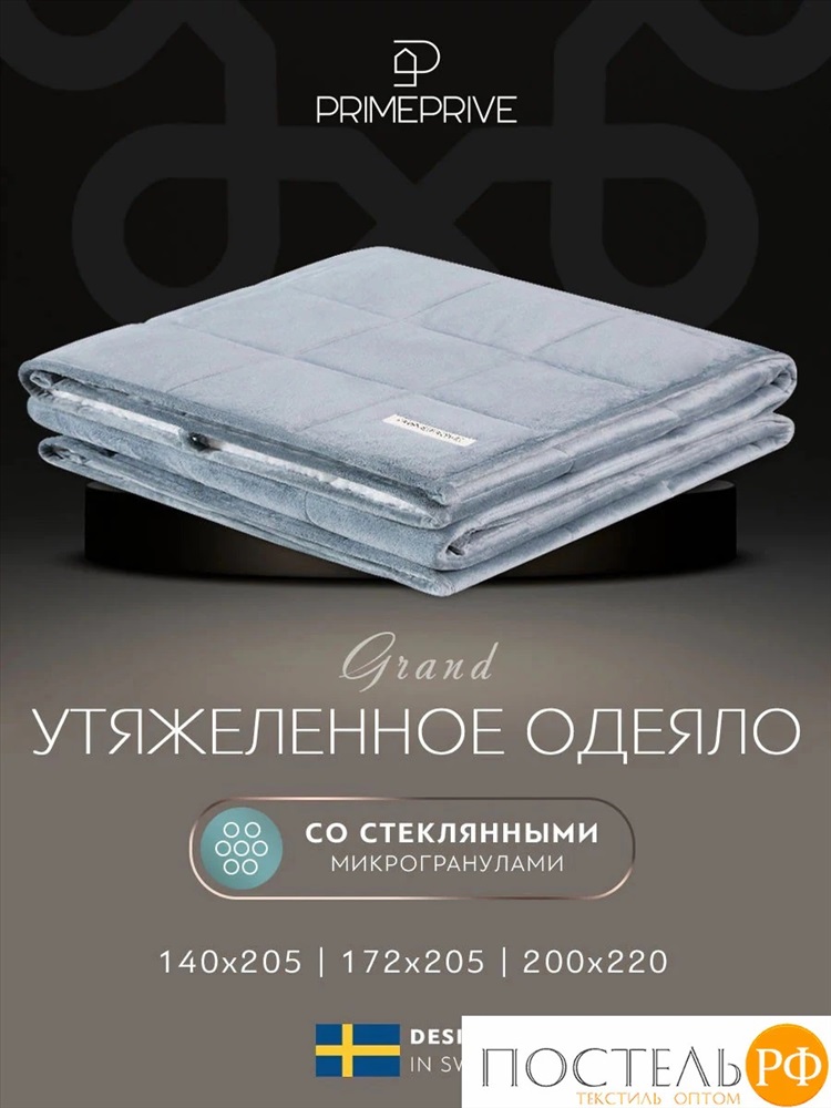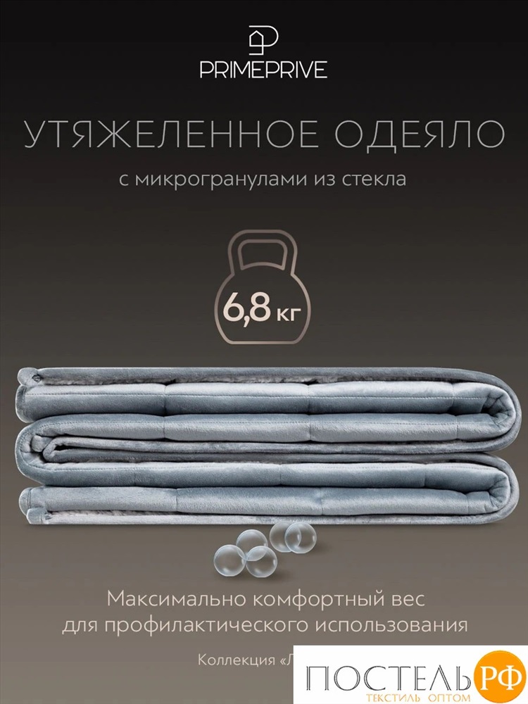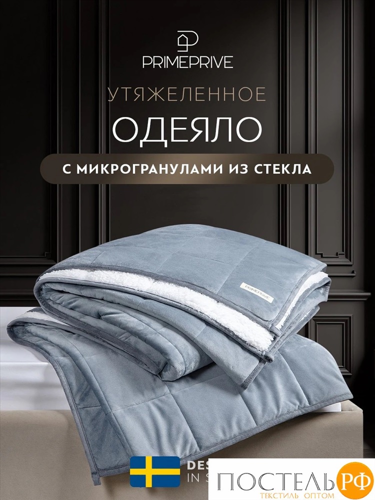 PRIME PRIVE ЛУНД сер Одеяло утяжеленное 200x220, 1пр.,велюр / иск.мех/стекл.гранулы 10 фото
