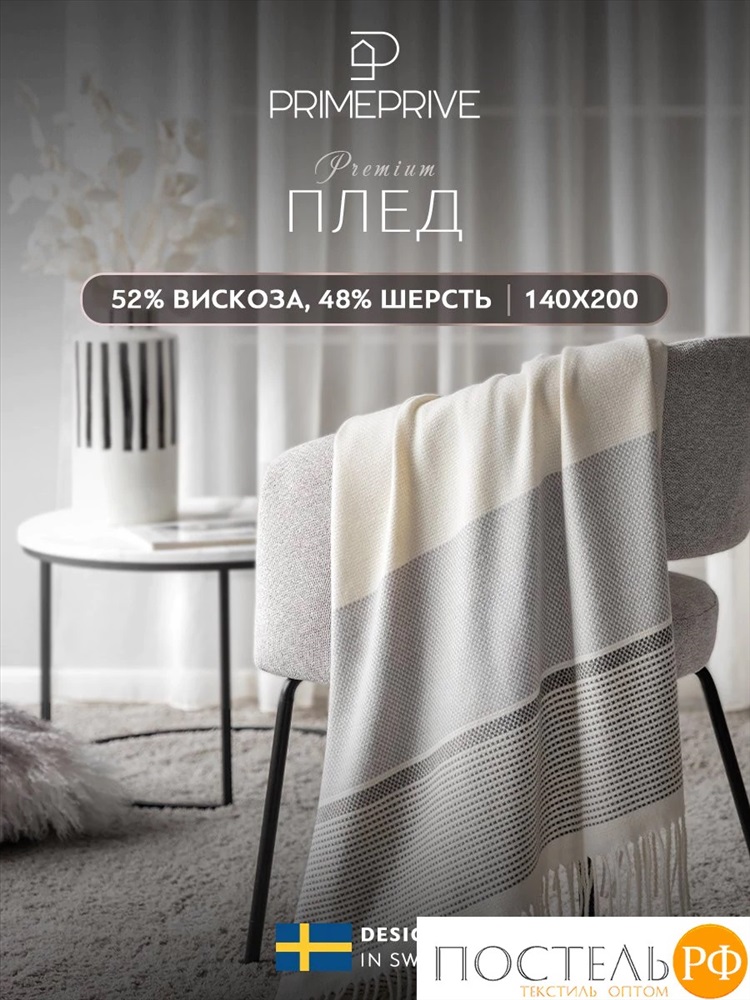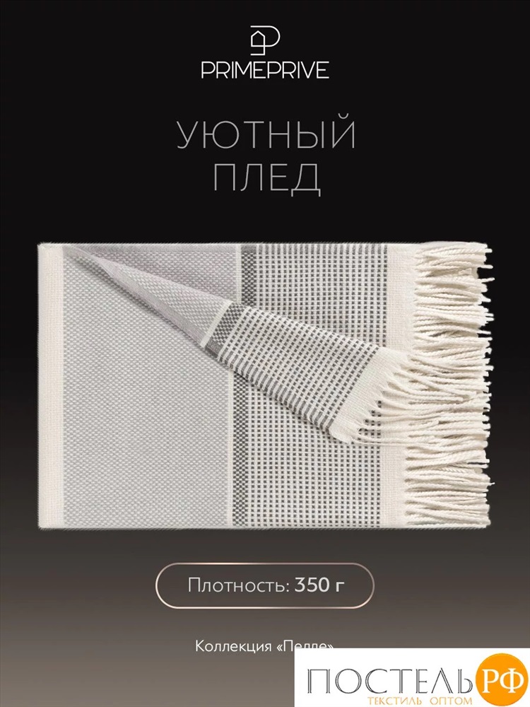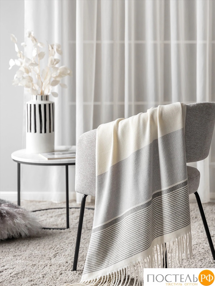 Estia ПЕЛЛЕ Плед сер./бел. 140х200, 1 пр., 52% вискоза, 48% шерсть 9 фото