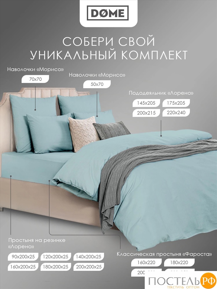 Dome ЛОРЕНО свет-кор Простыня на резинке 140х200+25 (см), 1пр., хл/сат 10 фото