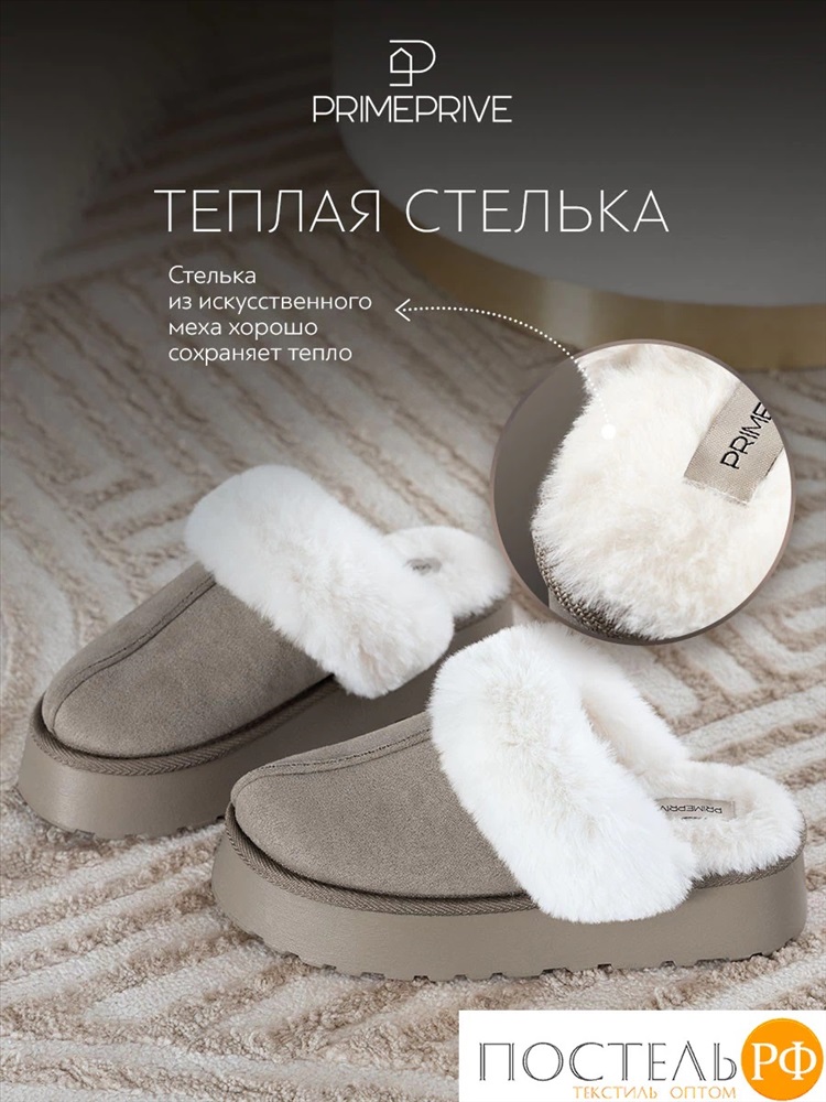 Prime Prive АЛЬВА сер.-коричн. Женские тапочки размер 40-41 9 фото