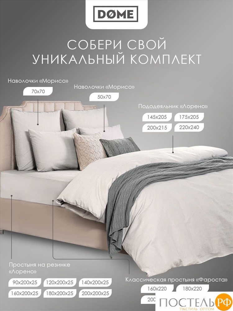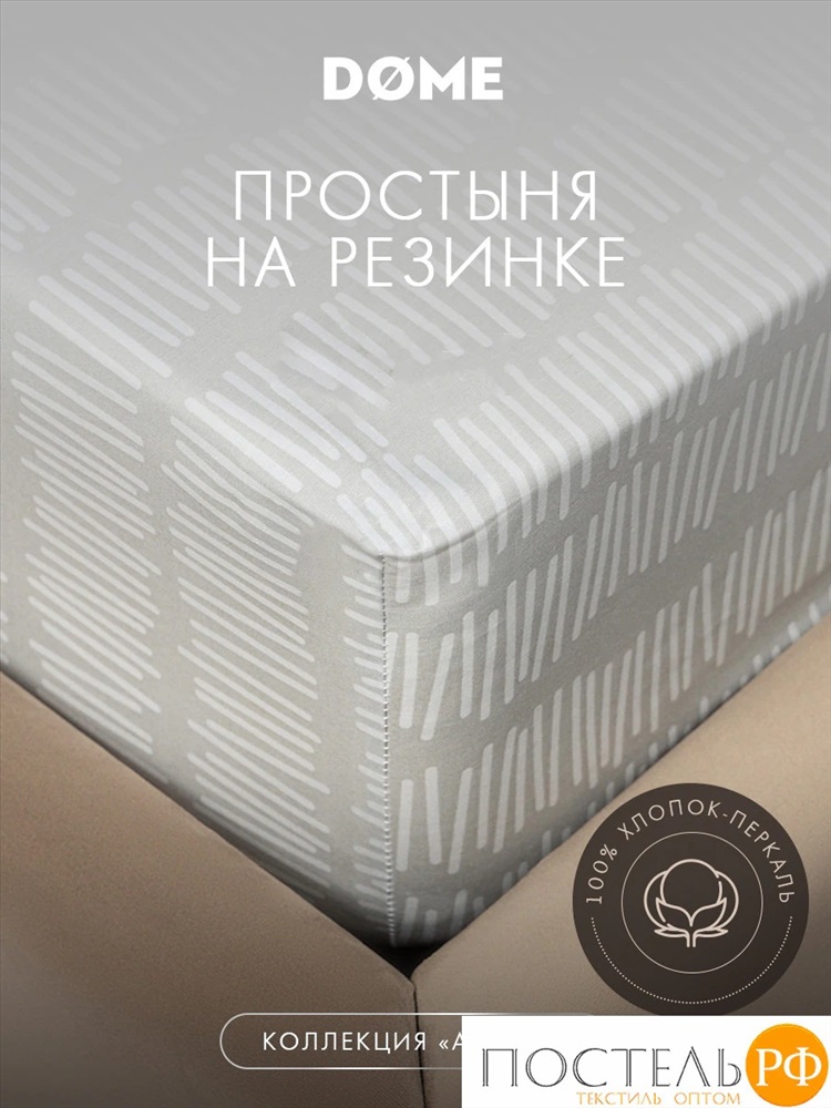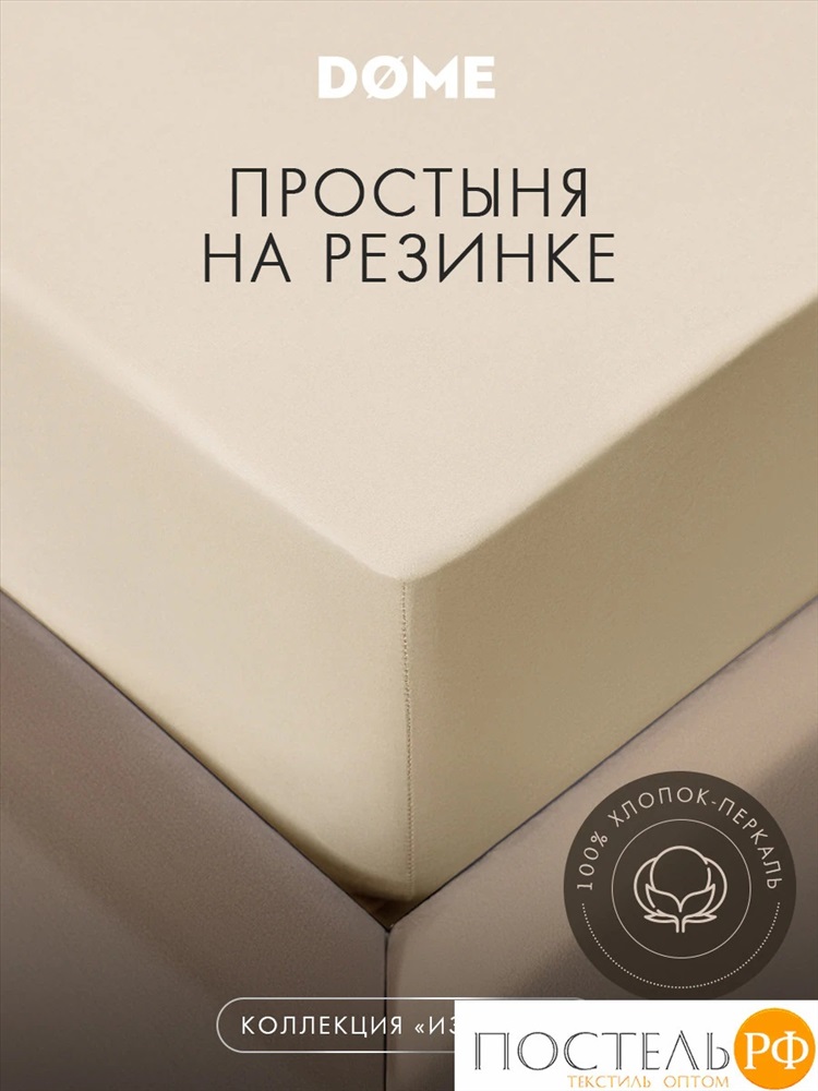 Dome ЛОРЕНО беж Простыня на резинке 140х200+25 (см), 1пр., хл/сат 10 фото