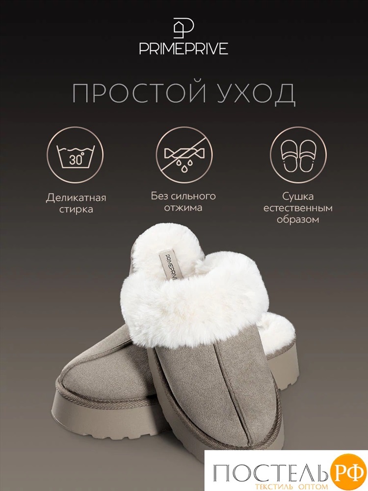 Prime Prive АЛЬВА сер.-коричн. Женские тапочки размер 36-37 9 фото