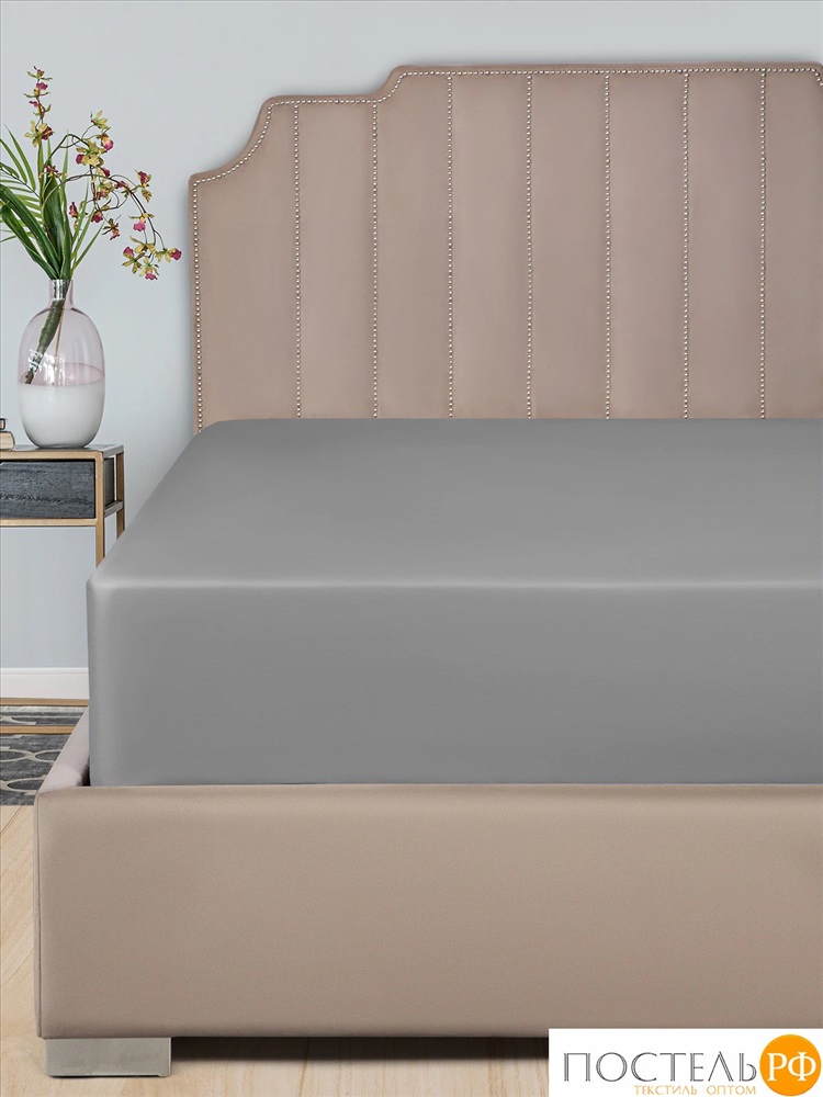 DOME ЛОРЕНО с-сер Простыня на резинке 180х200+25 (см), 1пр., хл/сат 10 фото