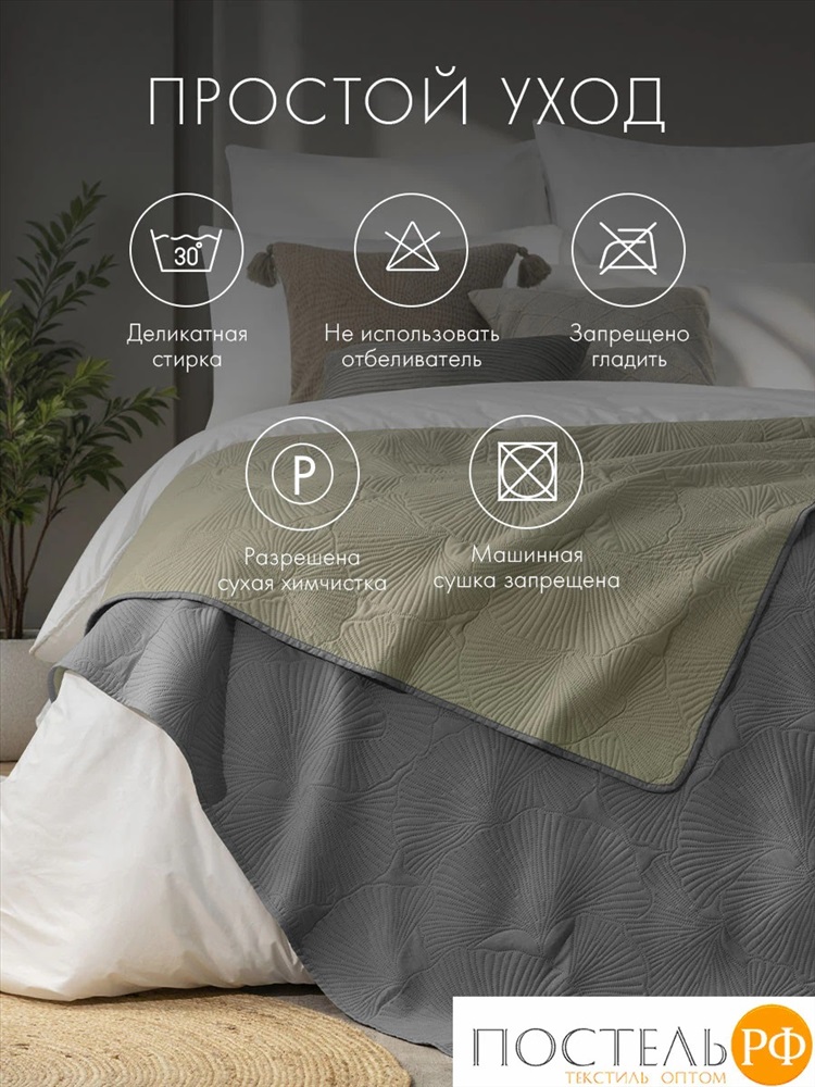 DOME ЛИВ сер.-зел. Покрывало 160х220, 1 пр., 100% полиэстер 8 фото