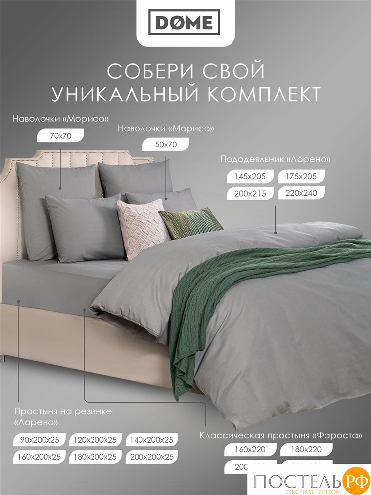 DOME ЛОРЕНО с-сер Простыня на резинке 140х200+25 (см), 1пр., хл/сат 10 фото