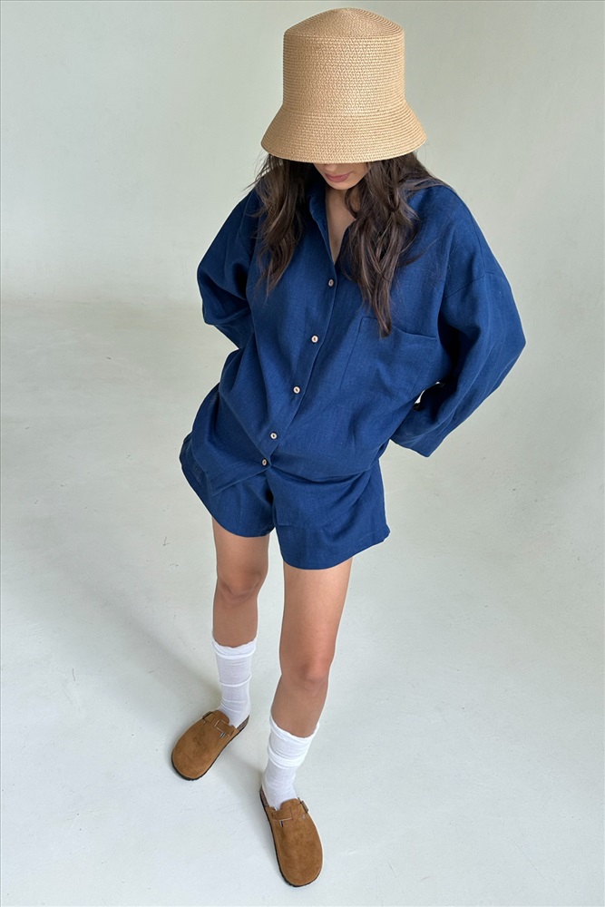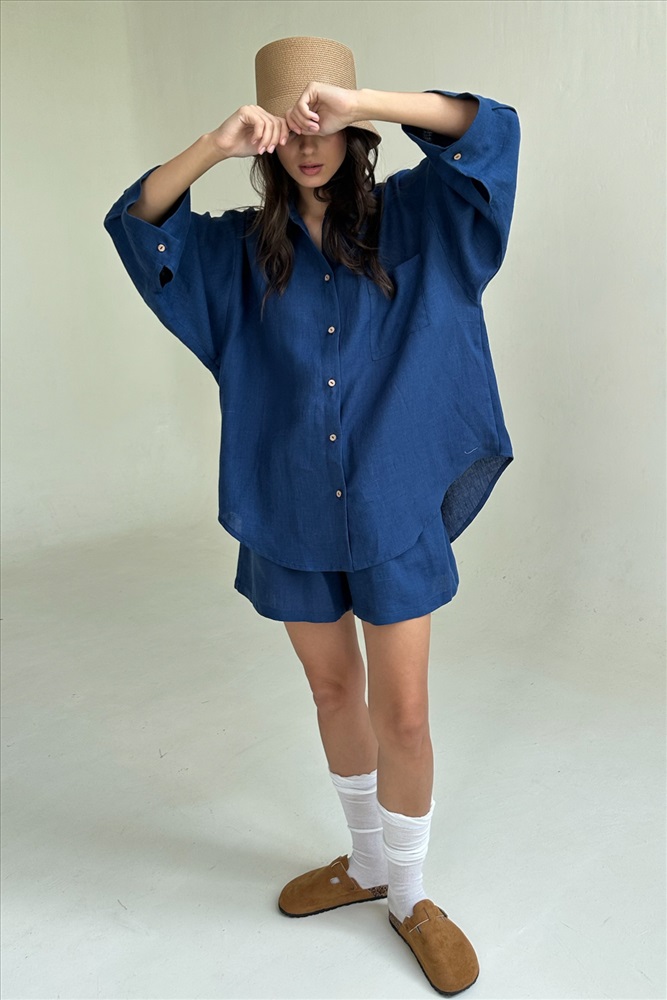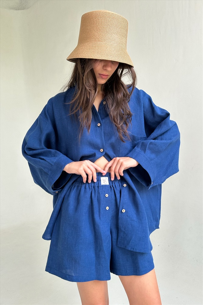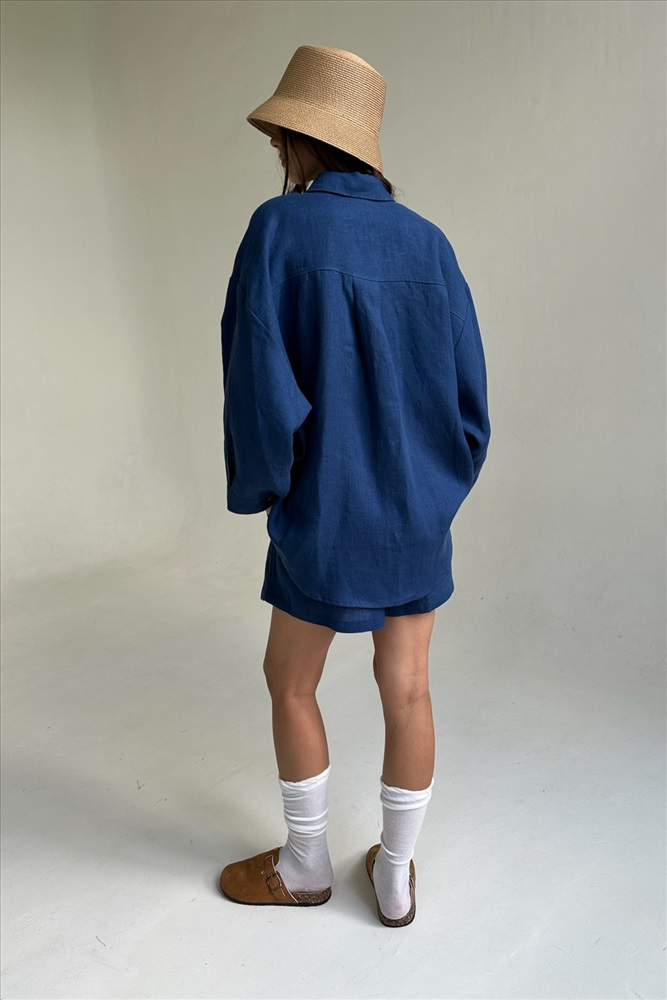 Костюм лён  SET019/29/Синий 9 фото