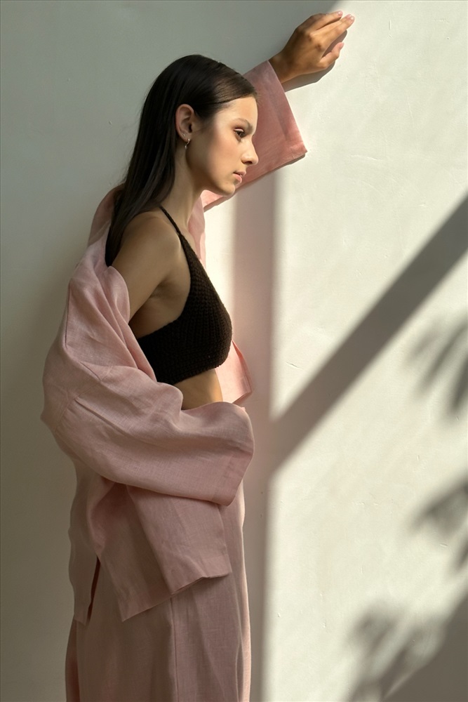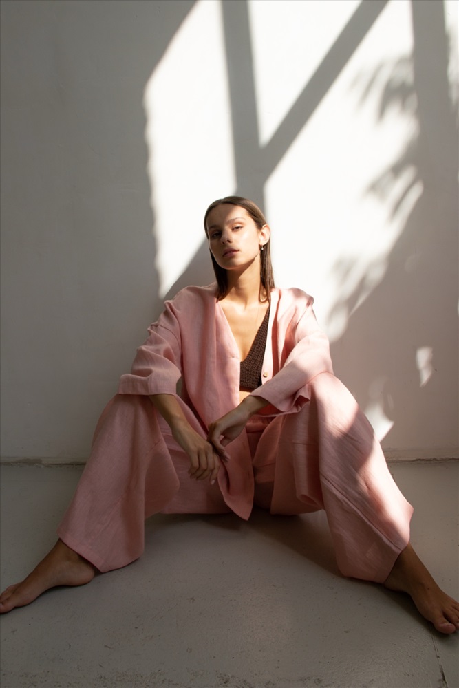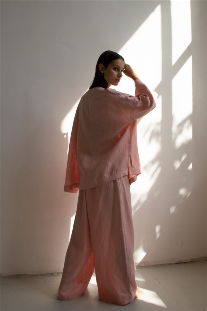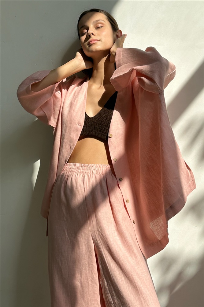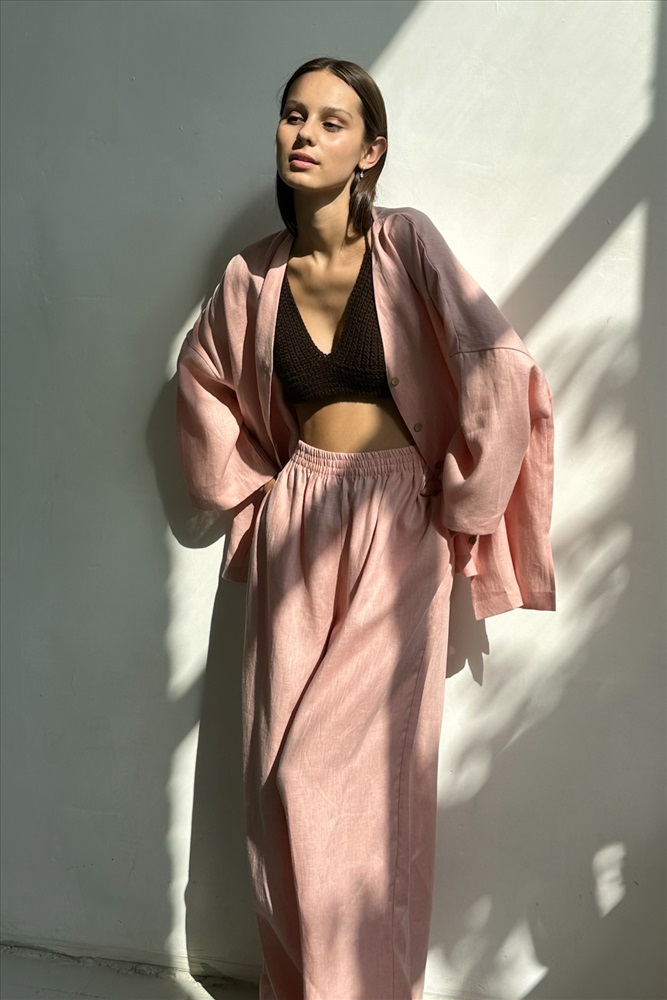 Костюм лён  SET004/06/Нежно-розовый 8 фото