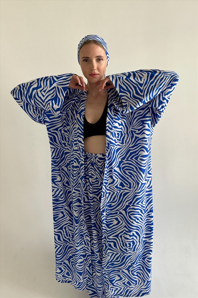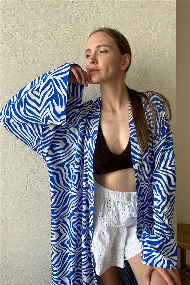 Кимоно   BEACH069/02/Белый, синий 10 фото