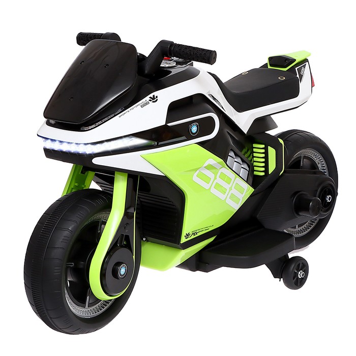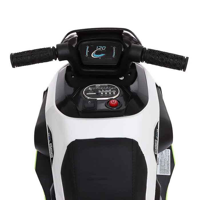 Электромобиль «Мотоцикл», 1 мотор, кожаное сидение, цвет бело-зелёный 8 фото