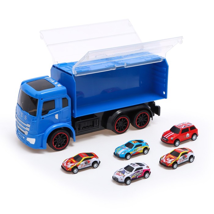 УЦЕНКА Грузовик инерционный TRUCK, с 4 машинками, световые и звуковые эффекты 7 фото