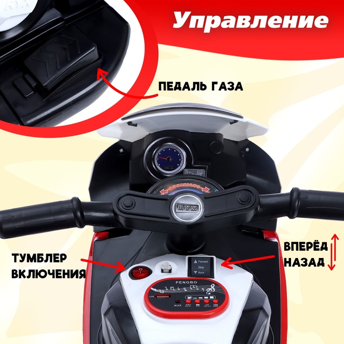 Детский электромобиль «Байк», цвет красный 10 фото