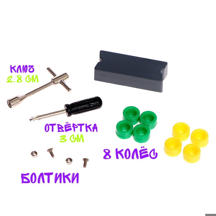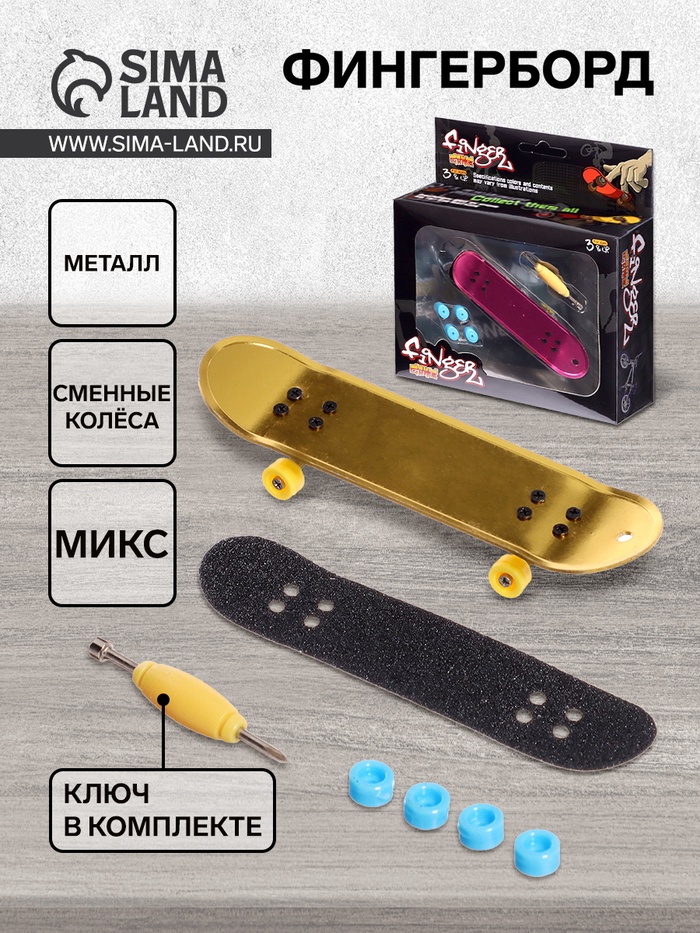 Фингерборд металлический «Золотой трюк», 2 комплекта колёс, ключ, цвет МИКС 10 фото