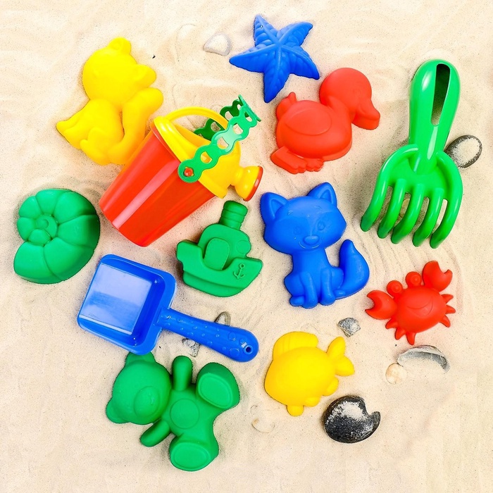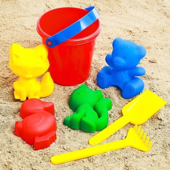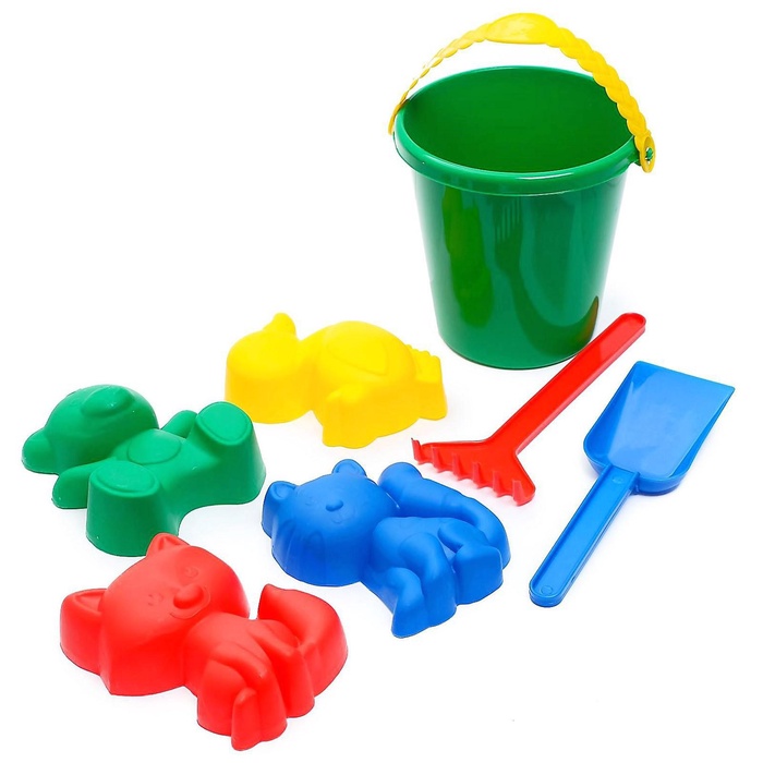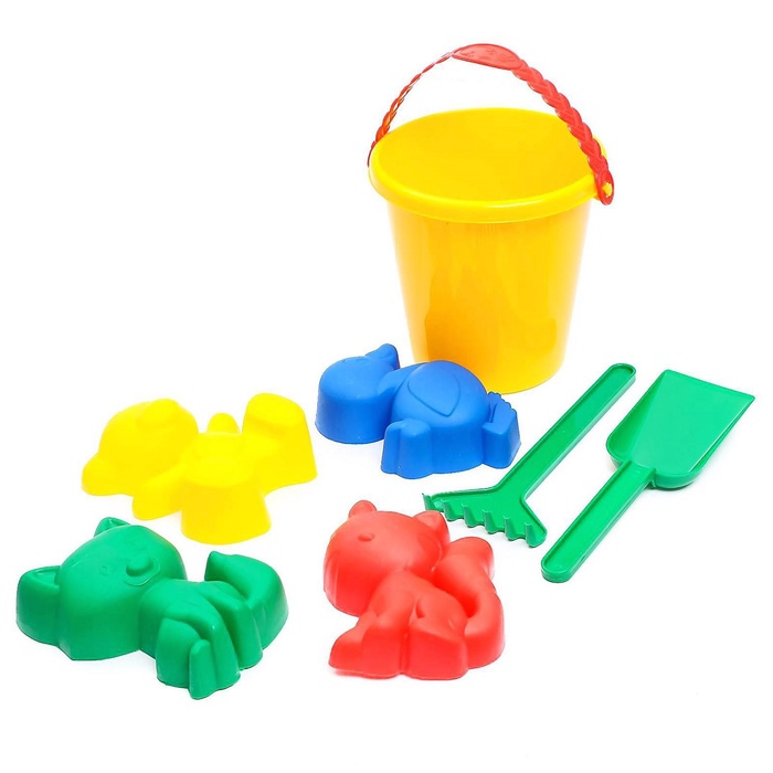 Набор игрушек для песочницы: ведёрко, 4 формочки для песка, грабли, лопатка, МИКС 10 фото
