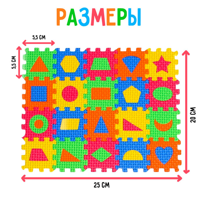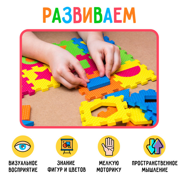 Мягкий развивающий коврик-пазл из 60 элементов, геометрические фигуры, 60×25 см 6 фото