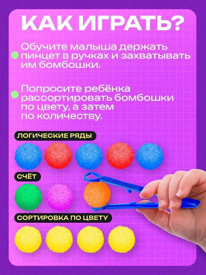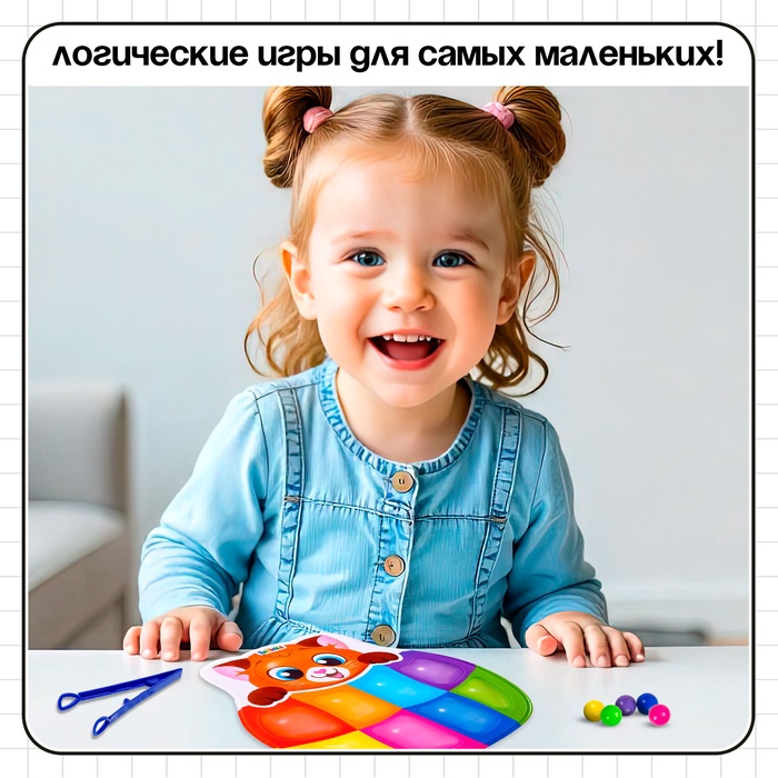 Сортер на 8 цветов «Весёлые бусинки», 40 бусин, пинцет, по методике Монтессори, 3+ 6 фото