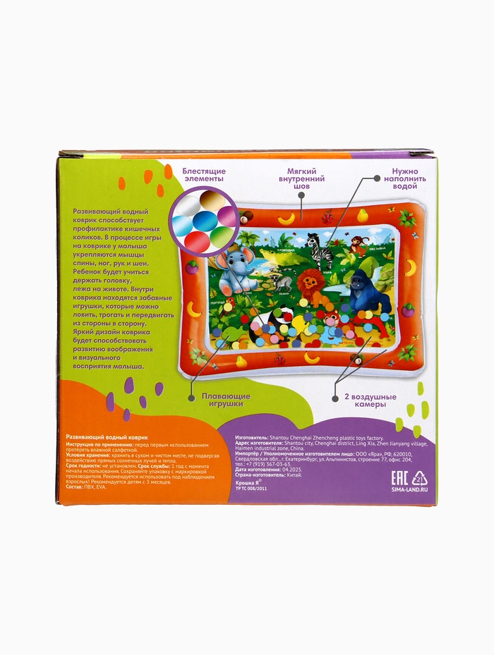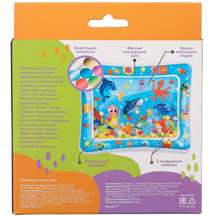 Акваковрик Крошка Я «Морские жители» надувной, развивающий, водный коврик, 65x50 см 9 фото
