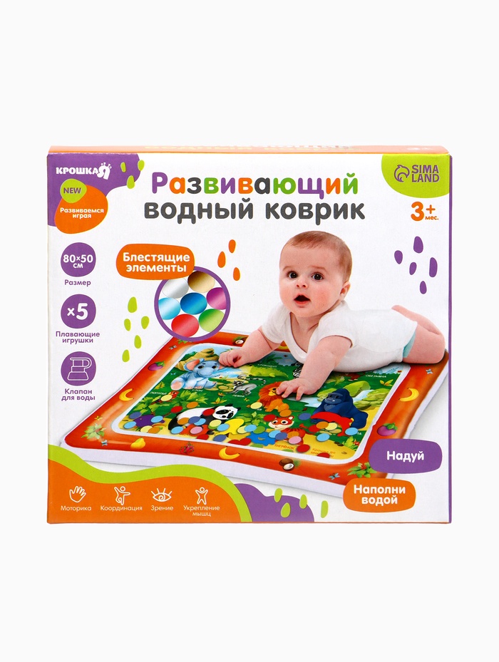 Акваковрик надувной развивающий для малышей «Гленн Доман», размер 65×50 см 10 фото