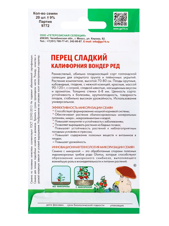 Семена Перец сладкий Калифорния вондер ред (УД) Е/П , Е/П, 20 шт.