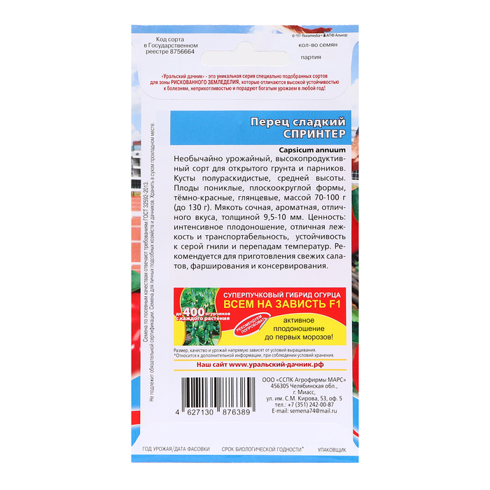 Семена Перец Красный куб, автор. серия 1+1/0,2 г