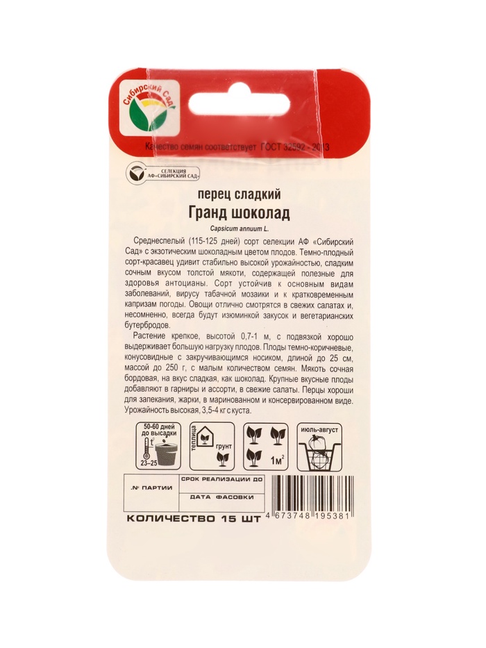 Семена Перец ГРАНД ШОКОЛАД 15шт
