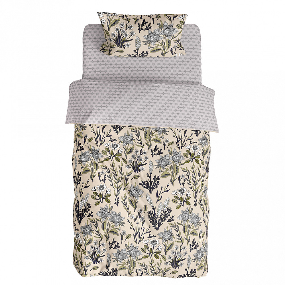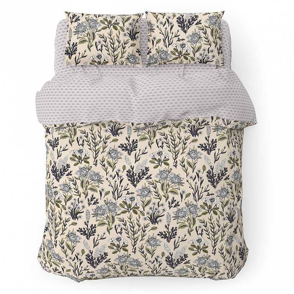 Постельное белье, комплект Дуэт (семейный) "Сон-трава", 7 предметов: 2 пододеяльника на пуговицах 145х215см, евро-простыня 220х240см, 2 наволочки 50х70см, 2 наволочки 70х70см, поплин 115г/м2, хлопок 100%, упаковка "классическая" ПВХ 34,5х41см, "Домаш