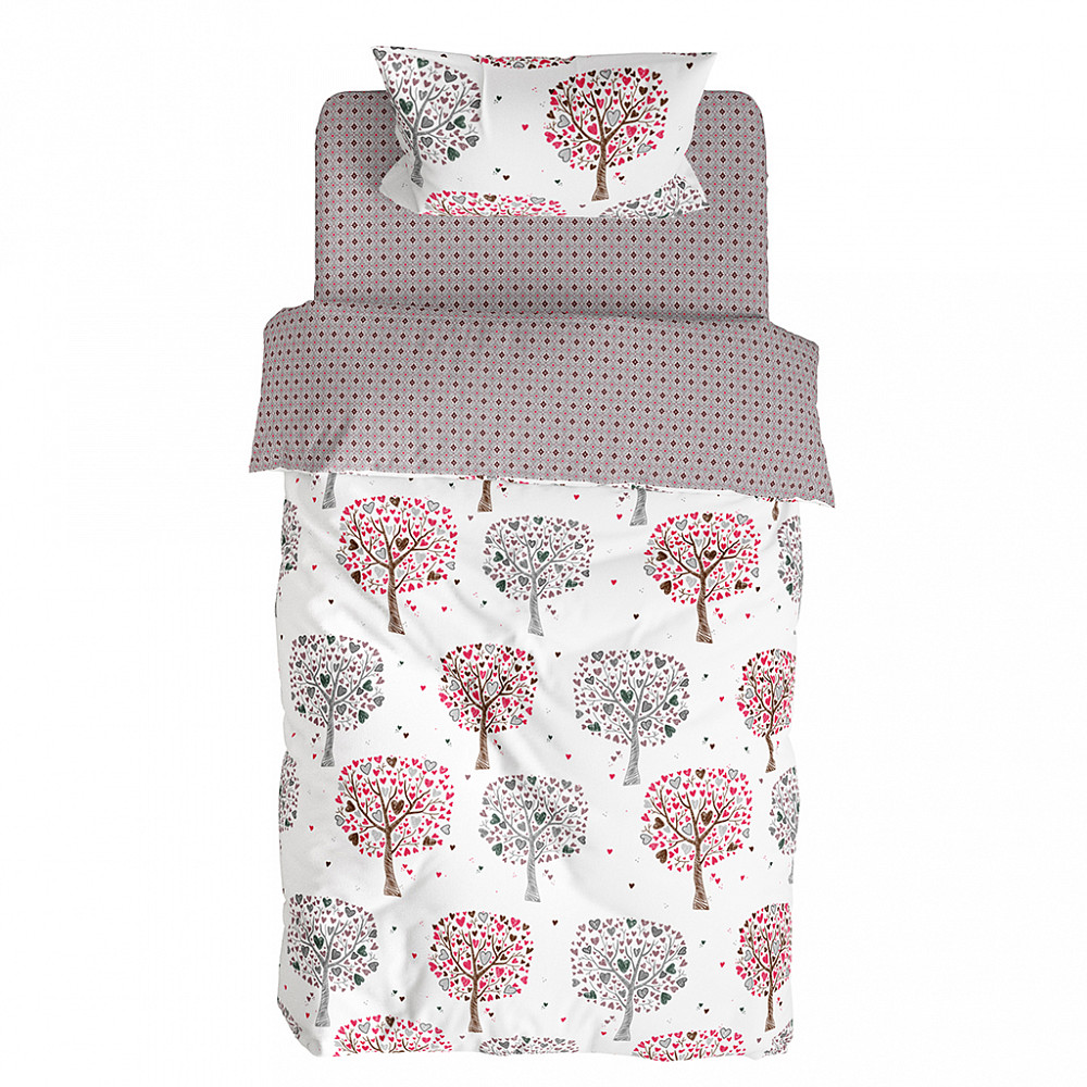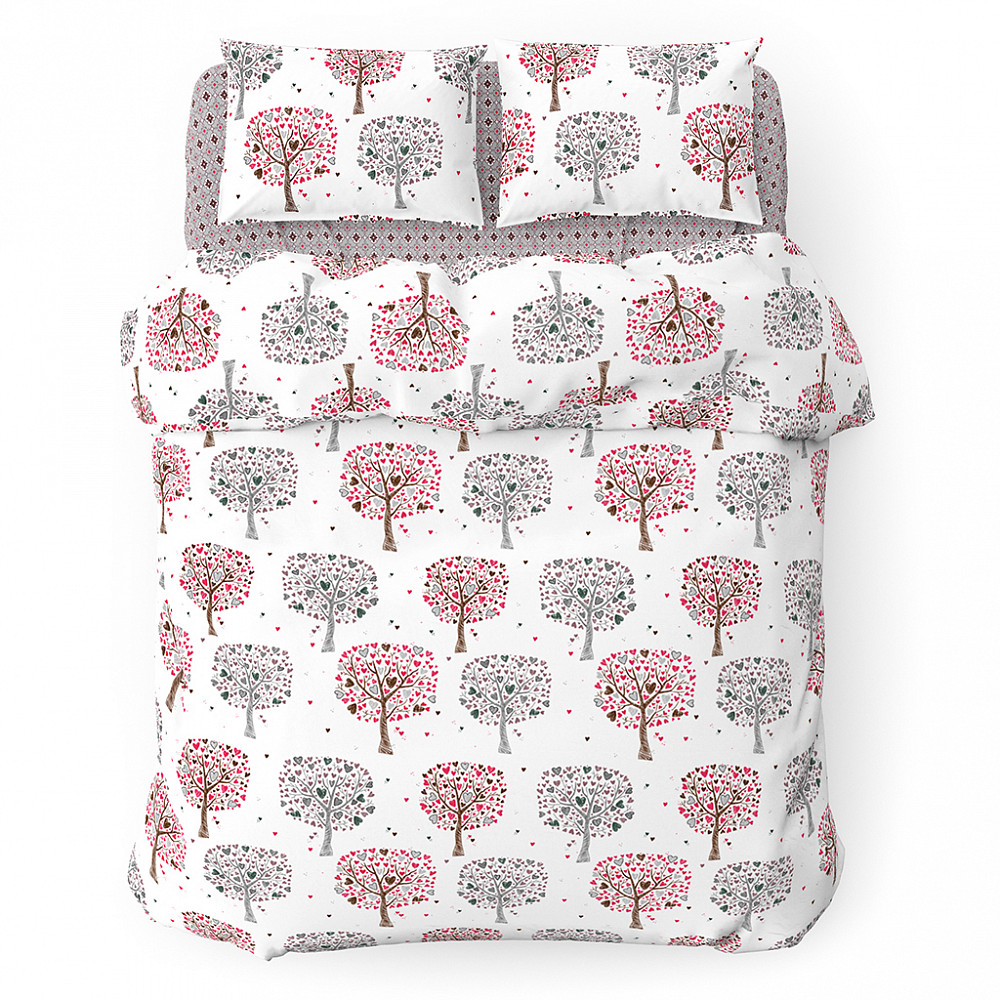 Постельное белье, комплект Дуэт (семейный) "Дерево желаний", 7 предметов: 2 пододеяльника на пуговицах 145х215см, евро-простыня 220х240см, 2 наволочки 50х70см, 2 наволочки 70х70см, поплин 115г/м2, хлопок 100%, упаковка "классическая" ПВХ 34,5х41см, "