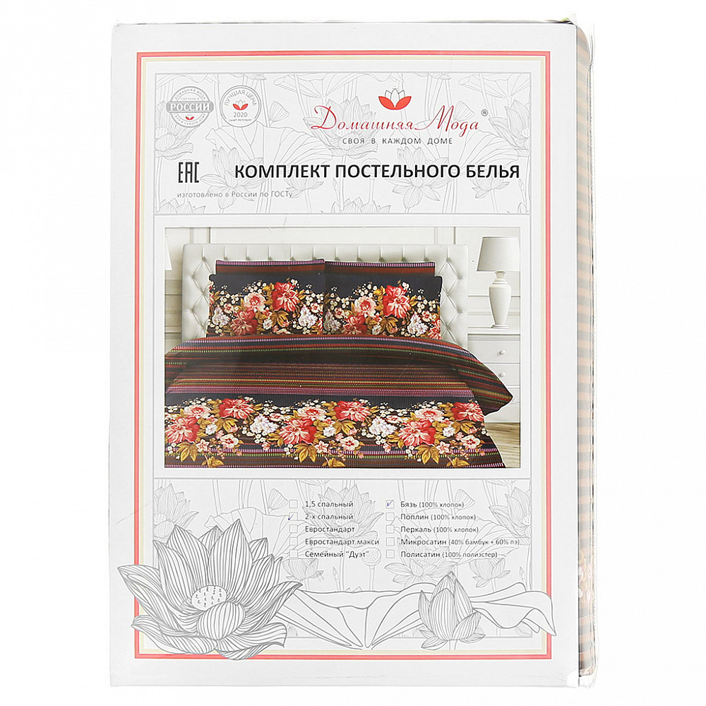 Постельное белье, комплект Евро Макси "Иллюзия, шоколад", 4 предмета: пододеяльник на кнопках 240х215см, простыня 220х240см, 2 наволочки 50х70см с клапаном-запахом, поплин "Комфорт" 115г/м2, хлопок 100%, упаковка "классическая" ПВХ 34,5х41см, "Домашн
