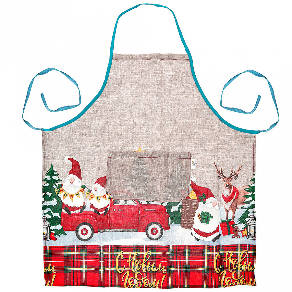 Фартук "Хозяюшка" 68х72см "Новогоднее путешествие", с карманом, на завязках, рогожка 171г/м2, хлопок 100%, на картоне, "Домашняя мода" (Россия) 2 фото