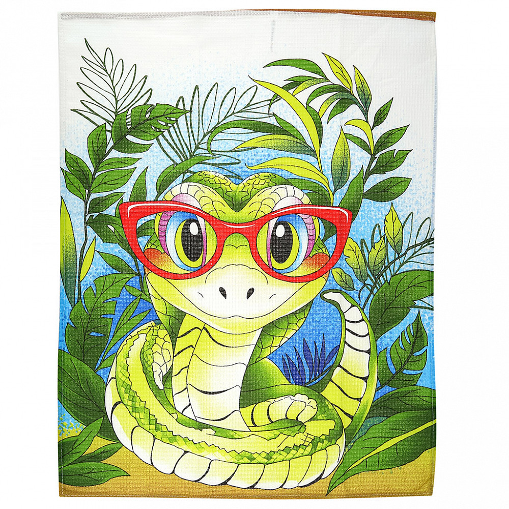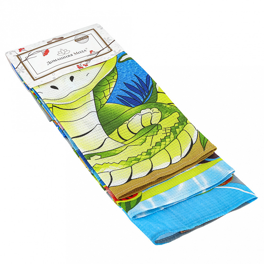 Салфетка хозяйственная 50х60см "Мечты змейки", набор 3шт, вафельное полотно, хлопок 100%, плотность 245г/м2, на картоне, "Домашняя мода" (Россия) 10 фото