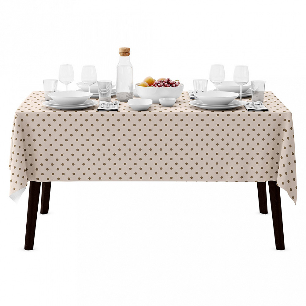 Скатерть 120х145см "Горошек" беж, длина стола до 105см, на 4 персоны, рогожка 186г/м2, хлопок 100%, упаковка классическая 28х41см, "Домашняя мода" (Россия) 6 фото