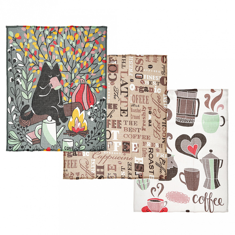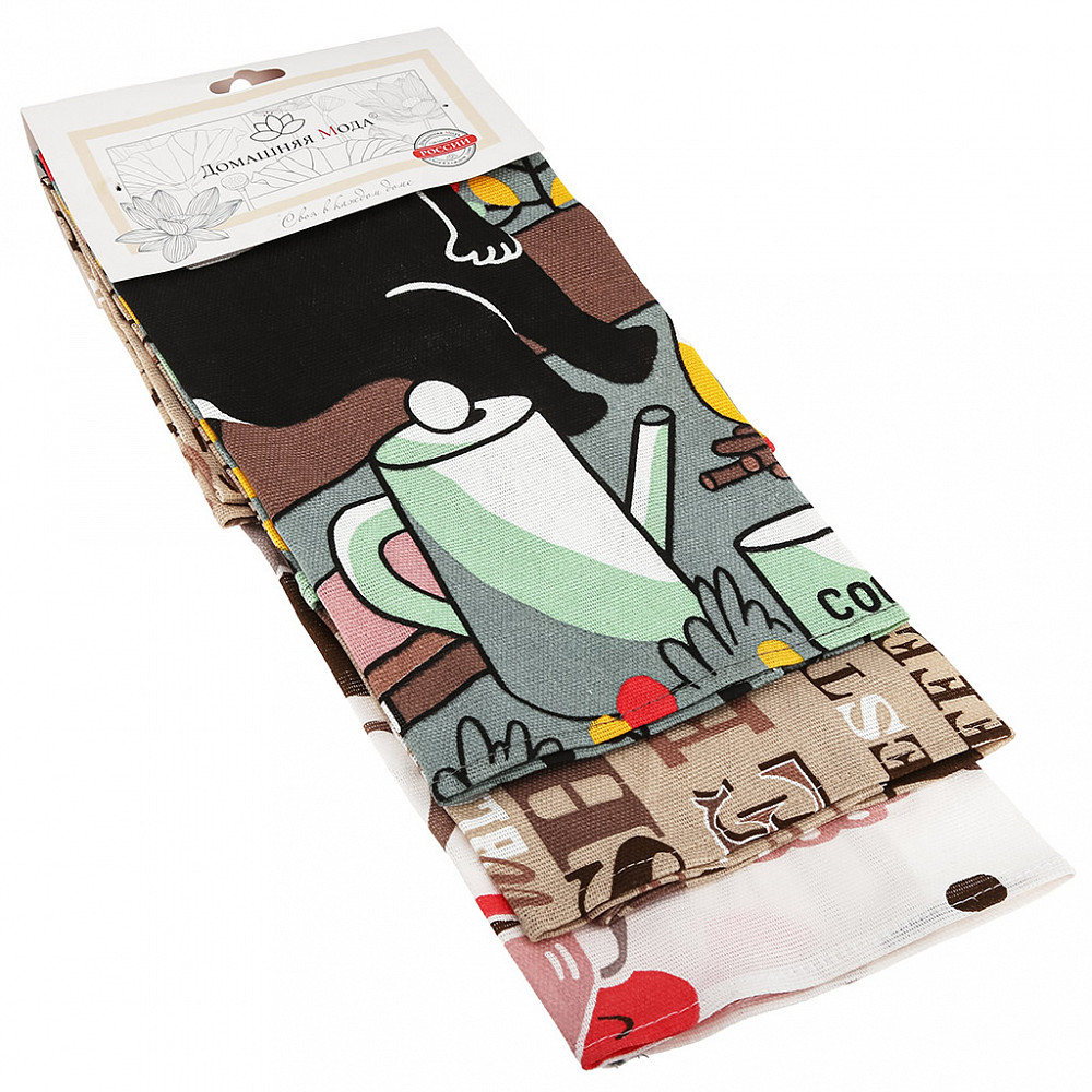 Полотенце кухонное 50х60см "Котофей и кофе", набор 3шт, рогожка 156г/м2, хлопок 100%, на картоне, "Домашняя мода" (Россия) 10 фото