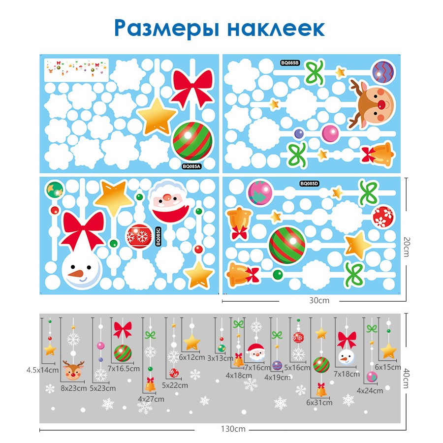 Наклейки на окна композиция "ГИРЛЯНДЫ" 113 элементов 4 листа 20*30 см. Многоразовые, Без клея (Статические) BQ085А