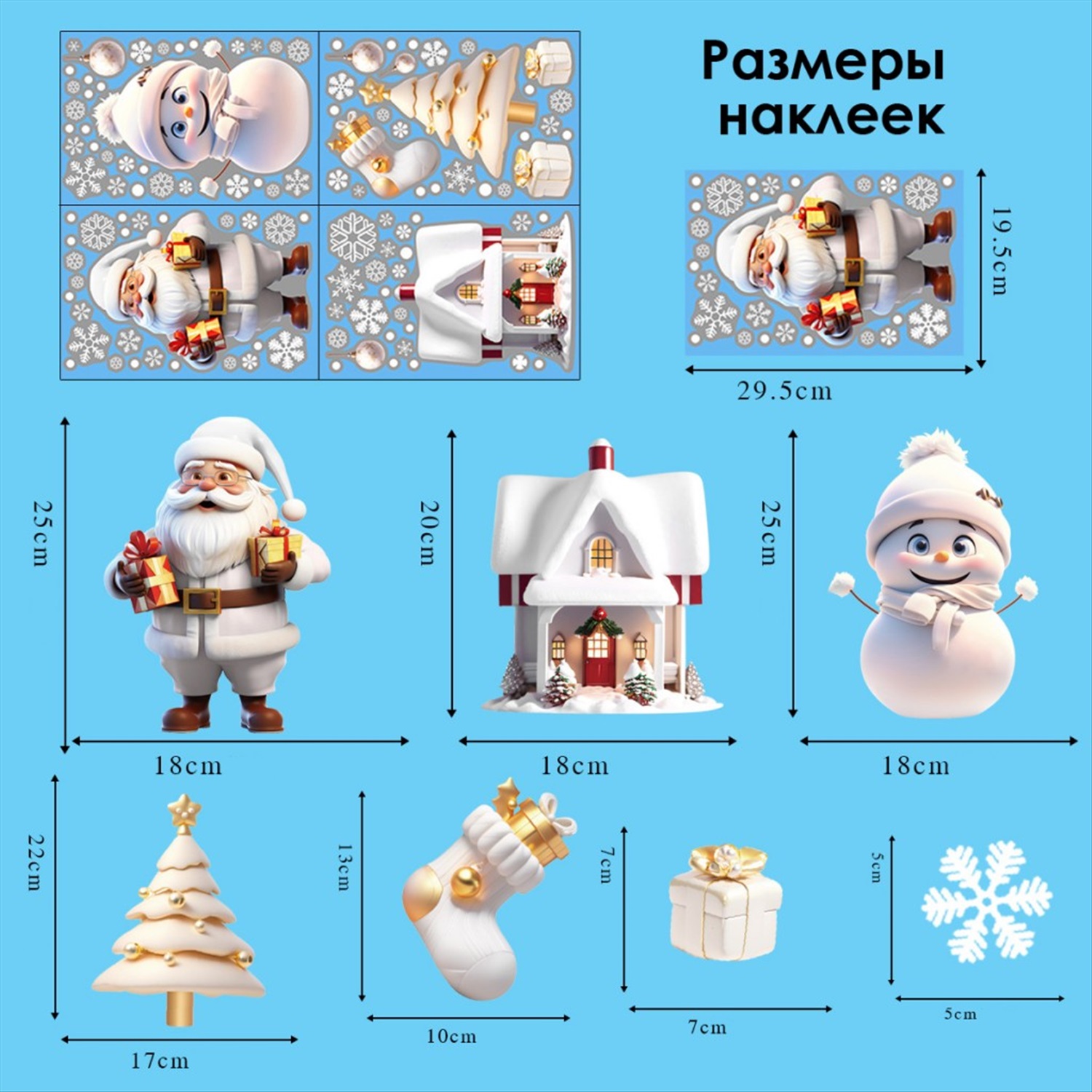 Наклейки на окна композиция "3D-Фигурки Белые" 113 элементов 4 листа 20*30 см. Многоразовые, Без клея (Статические)