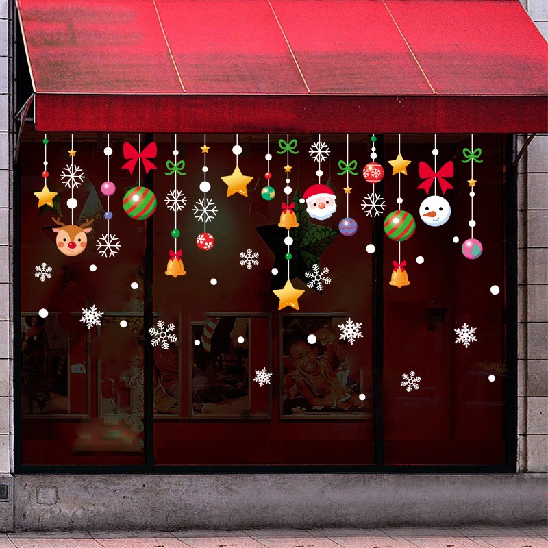 Наклейки на окна композиция "Елка/Носок/Снеговик/Санта" 176 элементов 4 листа 20*30 см. Многоразовые, Без клея (Статические) BQ433