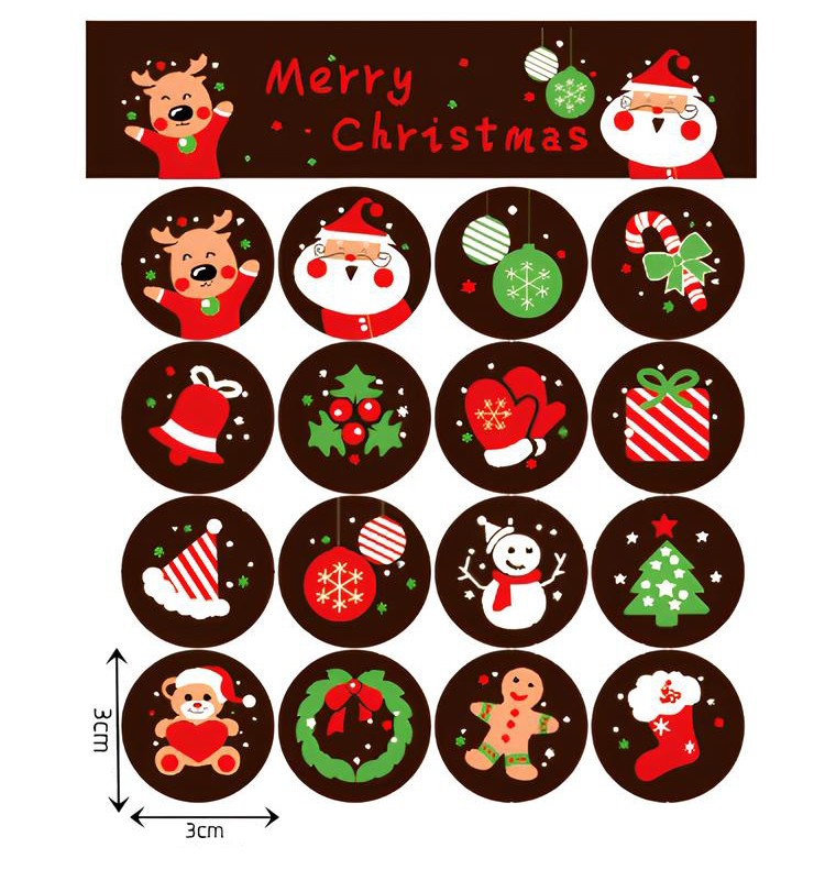 Наклейки новогодние круглые 1 лист 16 шт. Диаметр 3 см. ТЕМНО-КОРИЧНЕВЫЕ